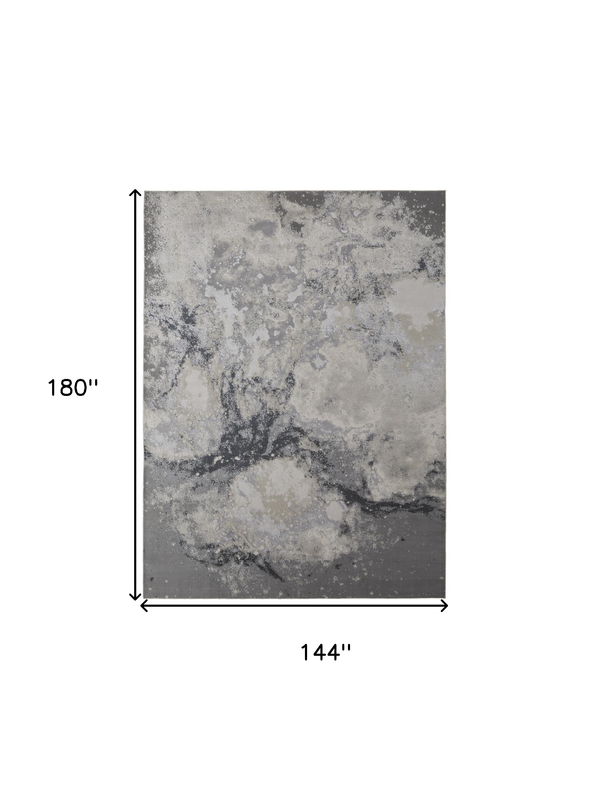 Add some artistry to your room with this 12-foot x 15-foot ivory black and gray abstract area rug. Ideal for spaces with kids and pets, this rug is stain resistant to help repel dirt and spilled liquids. Built to last, this rug crafted from polyester fibers is known for its durability and long lasting appeal. Rugs are a great way to showcase your style, hide imperfections, warm your home and reduce noise. This larger sized, industrial styled rug is ready to create a focal point or statement piece in your room. 144.00-inch h x 180.00-inch w x 0.39-inch d.