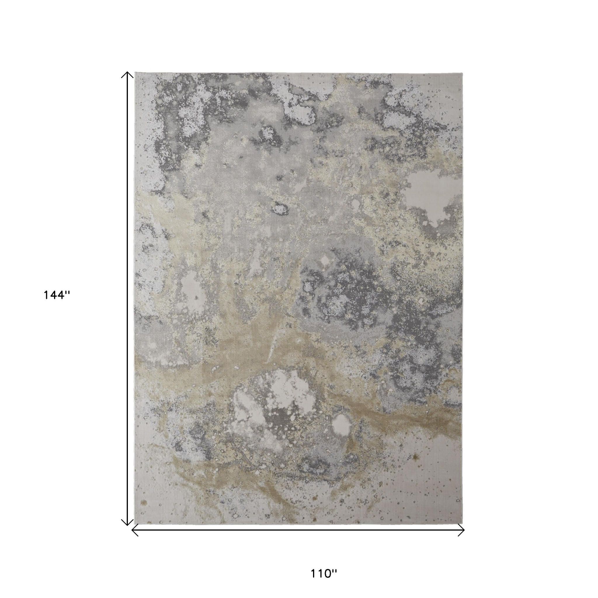 This 9' x 12' gray abstract area rug, is a great way to add warmth to a room. This rectangle shaped rug features a abstract design in gray to give it visual interest. A classic shape marries with good looking design for your space This superior Turkish rug represents the highest quality and is built to last. Ideal for spaces with kids and pets, this rug is stain resistant to help repel stains and spilled liquids. Place this area rug against a hardwood or tile floor and it will enliven your living space with style and sophistication. 0.39" H x 110" W x 144" D