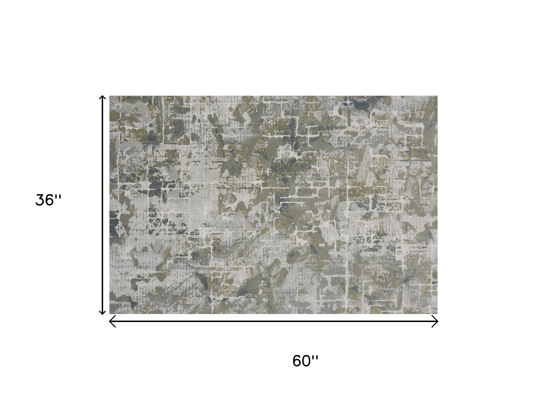 Set an inviting tone in your space with this 3' x 5' green gray and ivory abstract distressed stain resistant area rug. This rectangle shaped rug features a abstract design in green gray and ivory to give it visual interest. A classic shape marries with good looking design for your space Made in Turkey, this rug offers high quality combined with good looking designer sensibilities. Ideal for spaces with kids and pets, this rug is stain resistant to help repel stains and spilled liquids. Area Rugs help to give warmth and sense of home to your space. 0.43" H x 36" W x 60" D