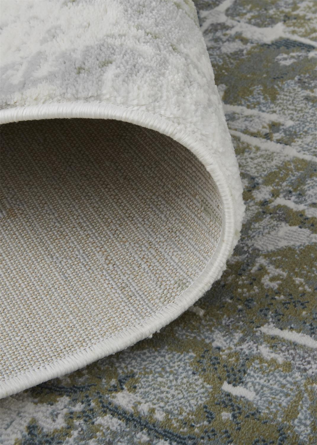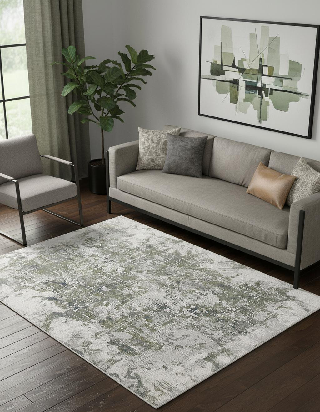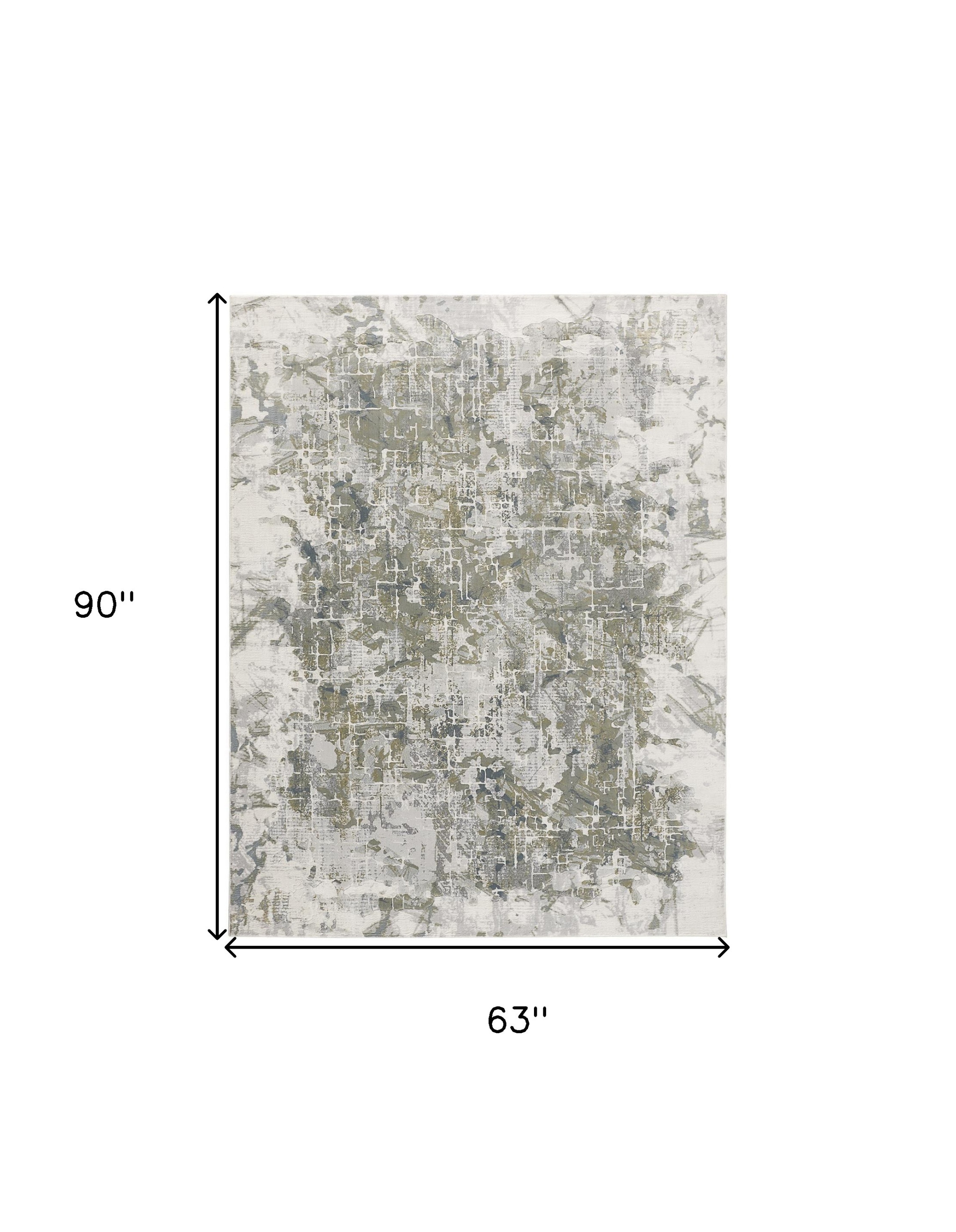 Set an inviting tone in your space with this 5' x 8' green gray and ivory abstract distressed stain resistant area rug. This rectangle shaped rug features a abstract design in green gray and ivory to give it visual interest. A classic shape marries with good looking design for your space This superior Turkish rug represents the highest quality and is built to last. Ideal for spaces with kids and pets, this rug is stain resistant to help repel stains and spilled liquids. Area Rugs help to give warmth and sense of home to your space. 0.43" H x 63" W x 90" D