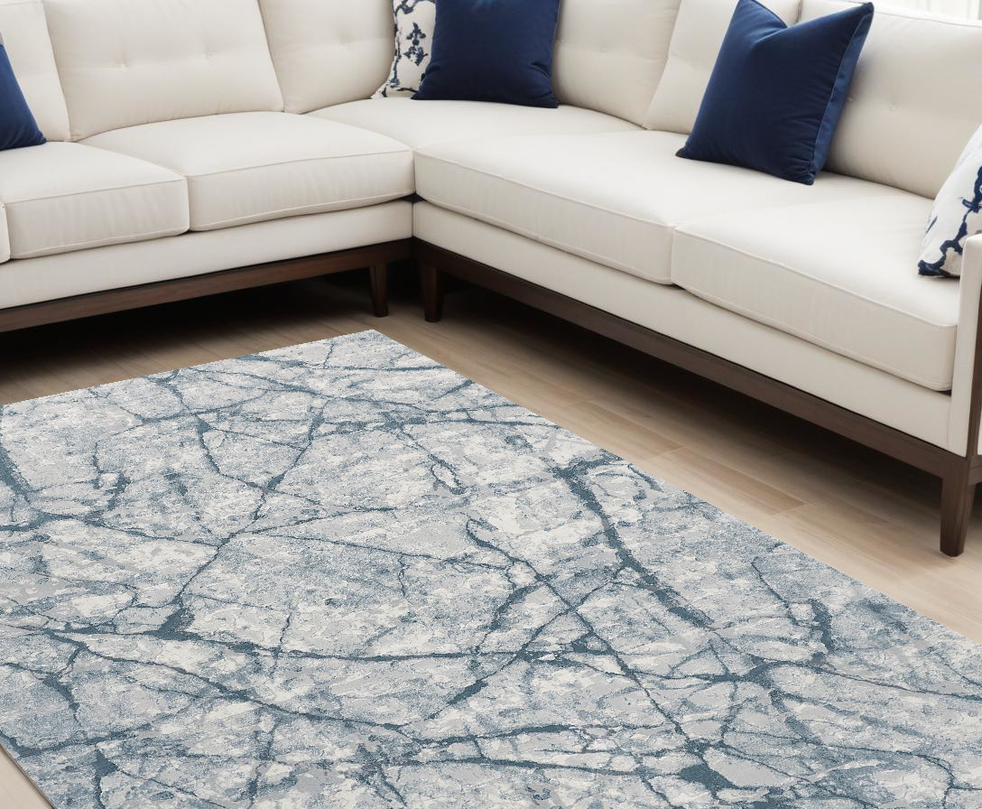 This 8' x 10' blue gray and ivory abstract distressed stain resistant area rug, is a great way to add warmth to a room. This rectangle shaped rug features a abstract design in blue gray and ivory to give it visual interest. A classic shape marries with good looking design for your space Made in Turkey, this rug offers high quality combined with good looking designer sensibilities. Ideal for spaces with kids and pets, this rug is stain resistant to help repel stains and spilled liquids. Place this area rug against a hardwood or tile floor and it will enliven your living space with style and sophistication. 0.43" H x 96" W x 120" D