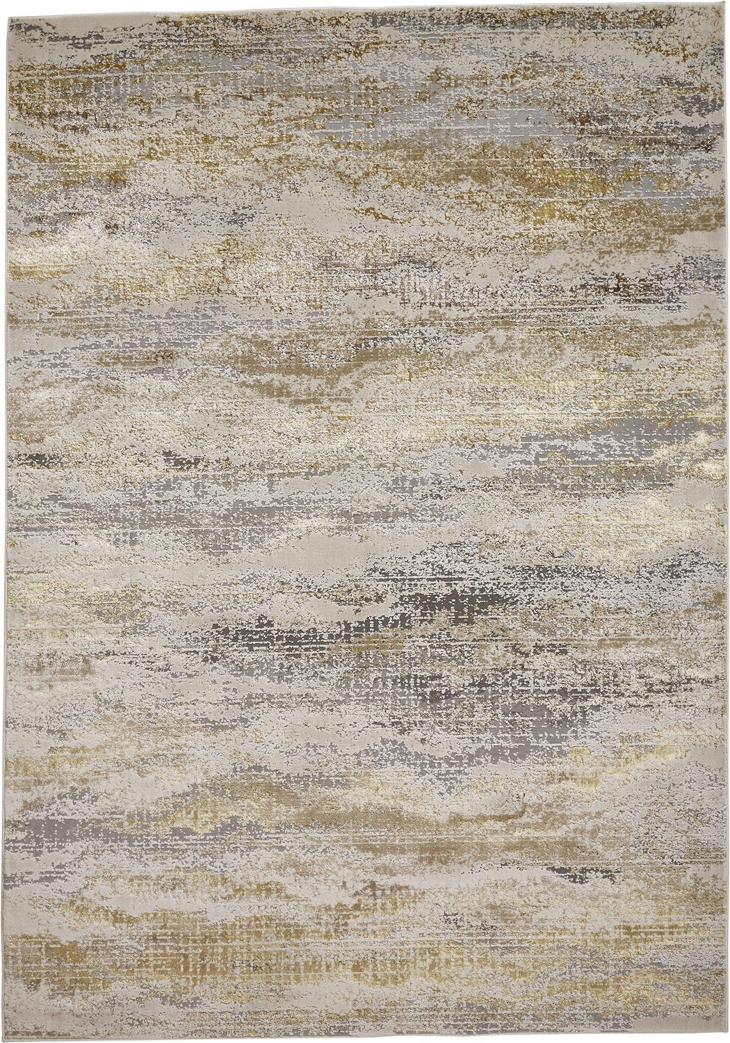 9' X 12' Gold Gray And Ivory Abstract Area Rug
