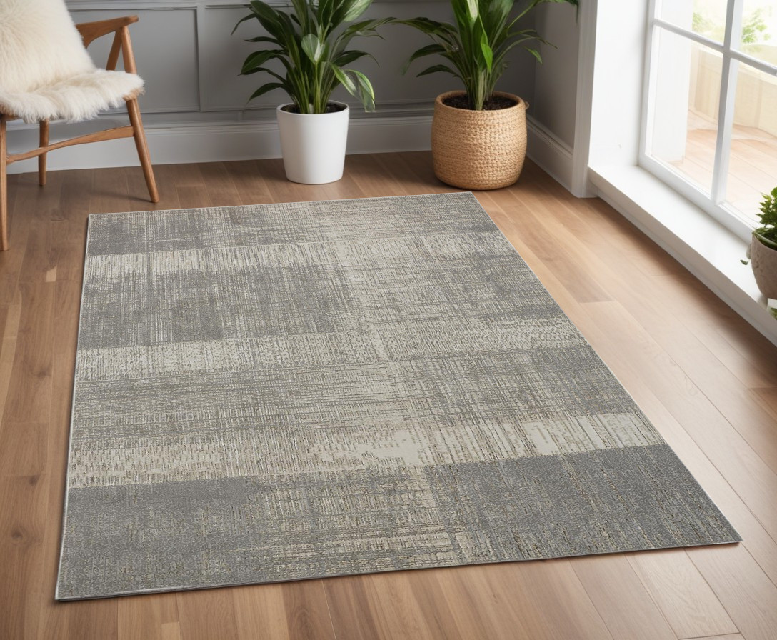 Add some artistry to your room with this 4-foot x 6-foot gray and ivory abstract non skid area rug. This rectangle shaped rug features a abstract design in gray and ivory to give it visual interest. A classic shape marries with good looking design for your space. 47-inch H x 72-inch W x 0.39-inch D