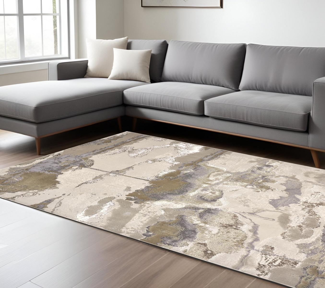 brown gray abstract area rug, gray abstract area rug, abstract area rug, ivory brown gray abstract area, 7' X 10' ivory brown gray |