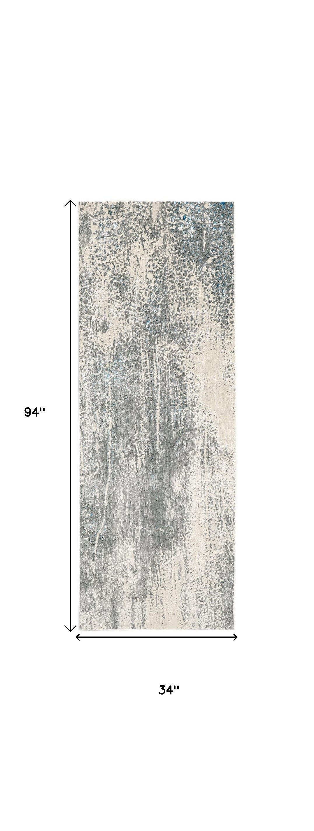 This 8-foot ivory gray and blue abstract runner rug, is a great way to add warmth to a room. Ideal for spaces with kids and pets, this rug is stain resistant to help repel dirt and spilled liquids. Built to last, this rug crafted from polypropylene and polyester fibers is known for its durability and long lasting appeal. Rugs are a great way to showcase your style, hide imperfections, warm your home and reduce noise. This contemporary style runner makes a great accent for the hallway, in front of cabinets, in the laundry room, or any other space you need a narrow and long rug. 34.00-inch h x 94.00-inch w x 0.39-inch d.
