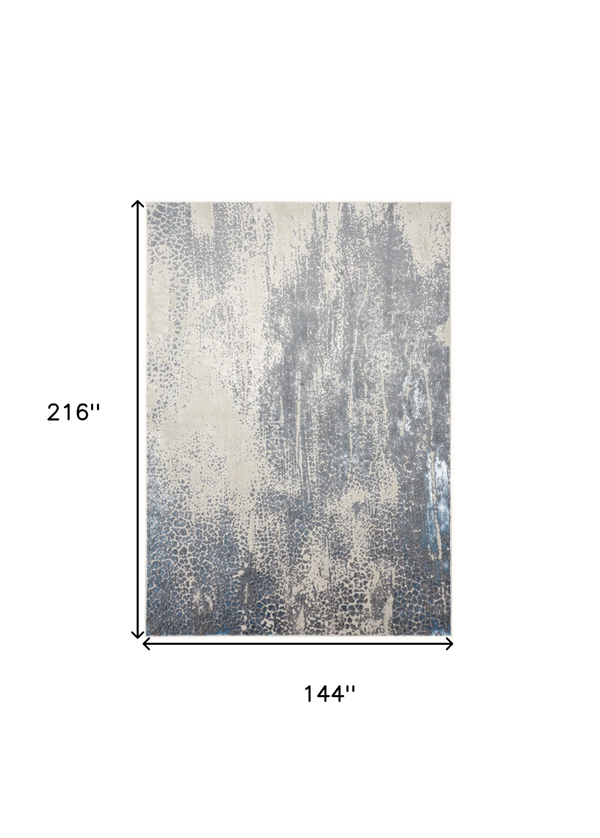 This 12-foot x 18-foot ivory gray and blue abstract area rug, is a great way to add warmth to a room. Built to last, this rug crafted from polyester fibers is known for its durability and long lasting appeal. Rugs are a great way to showcase your style, hide imperfections, warm your home and reduce noise. 144.00-inch h x 216.00-inch w x 0.39-inch d.