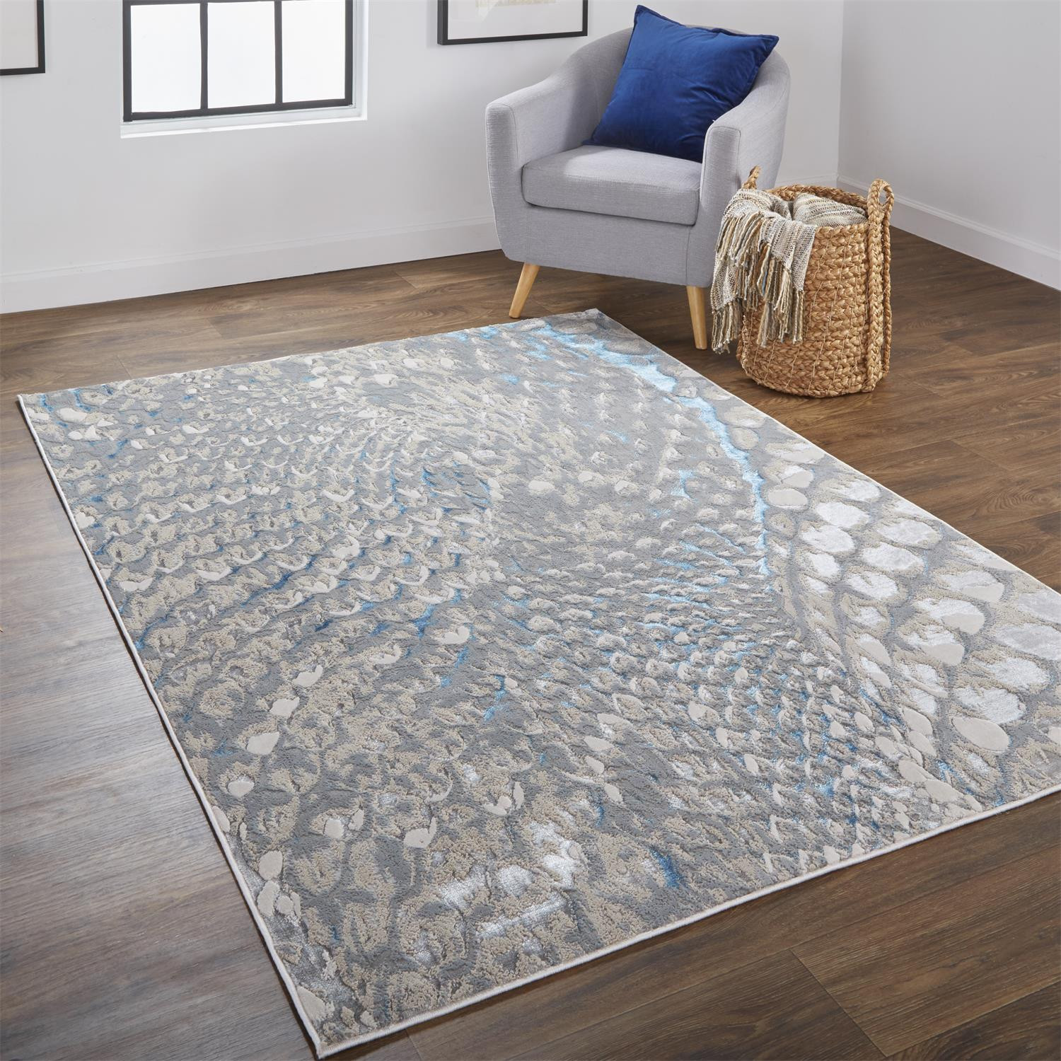 Add some artistry to your room with this 10-foot x 13-foot blue and gray geometric area rug. Ideal for spaces with kids and pets, this rug is stain resistant to help repel dirt and spilled liquids. Built to last, this rug crafted from polyester fibers is known for its durability and long lasting appeal. Rugs are a great way to showcase your style, hide imperfections, warm your home and reduce noise. 120.00-inch h x 158.00-inch w x 0.39-inch d.