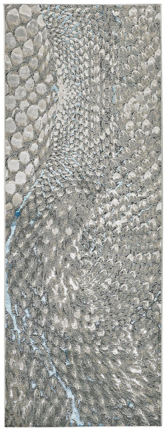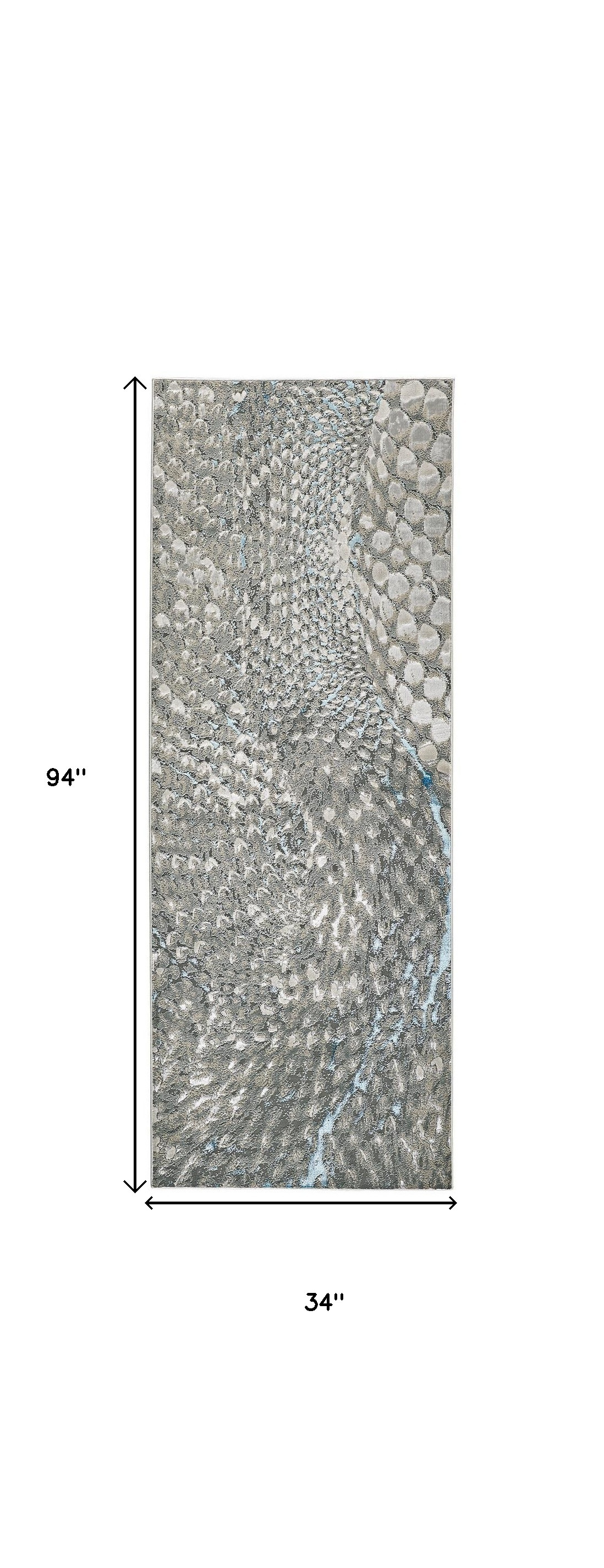 Set an inviting tone in your space with this 8-foot blue and gray geometric runner rug. Ideal for spaces with kids and pets, this rug is stain resistant to help repel dirt and spilled liquids. Built to last, this rug crafted from polypropylene and polyester fibers is known for its durability and long lasting appeal. Rugs are a great way to showcase your style, hide imperfections, warm your home and reduce noise. This contemporary style runner makes a great accent for the hallway, in front of cabinets, in the laundry room, or any other space you need a narrow and long rug. 34.00-inch h x 94.00-inch w x 0.39-inch d.