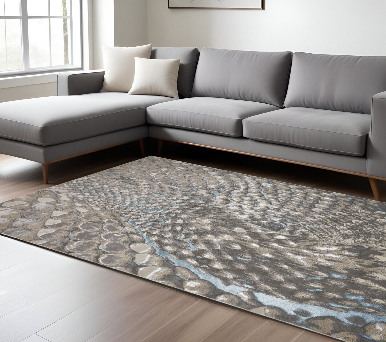 This 12-foot x 15-foot blue and gray geometric area rug, is a great way to add warmth to a room. Built to last, this rug crafted from polyester fibers is known for its durability and long lasting appeal. Rugs are a great way to showcase your style, hide imperfections, warm your home and reduce noise. This larger sized, modern styled rug is ready to create a focal point or statement piece in your room. 144.00-inch h x 180.00-inch w x 0.39-inch d.