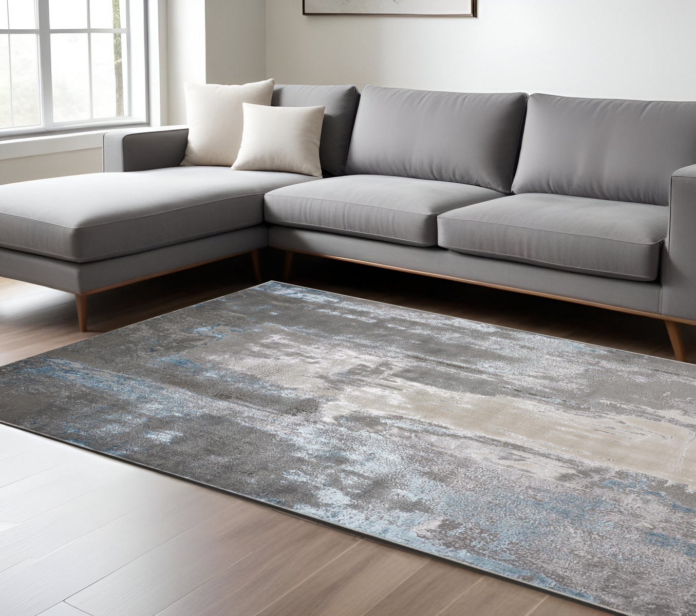 Set an inviting tone in your space with this 8-foot x 10-foot gray ivory and blue abstract area rug. Built to last, this rug crafted from polyester fibers is known for its durability and long lasting appeal. Rugs are a great way to showcase your style, hide imperfections, warm your home and reduce noise. 96.00-inch h x 120.00-inch w x 0.39-inch d.