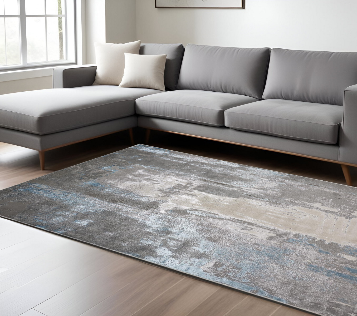ivory blue abstract area rug, blue abstract area rug, abstract area rug, gray ivory blue abstract area, 12' X 15' gray ivory |