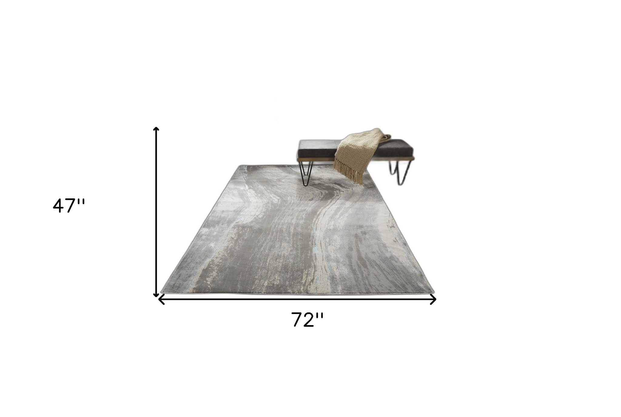 Add great coloration and comfortable texture to your space with this 4' x 6' gray ivory and blue abstract area rug. This rectangle shaped rug features a abstract design in gray ivory and blue to give it visual interest. A classic shape marries with good looking design for your space Made in Turkey, this rug offers high quality combined with good looking designer sensibilities. Area Rugs help to give warmth and sense of home to your space. 0.39" H x 47" W x 72" D