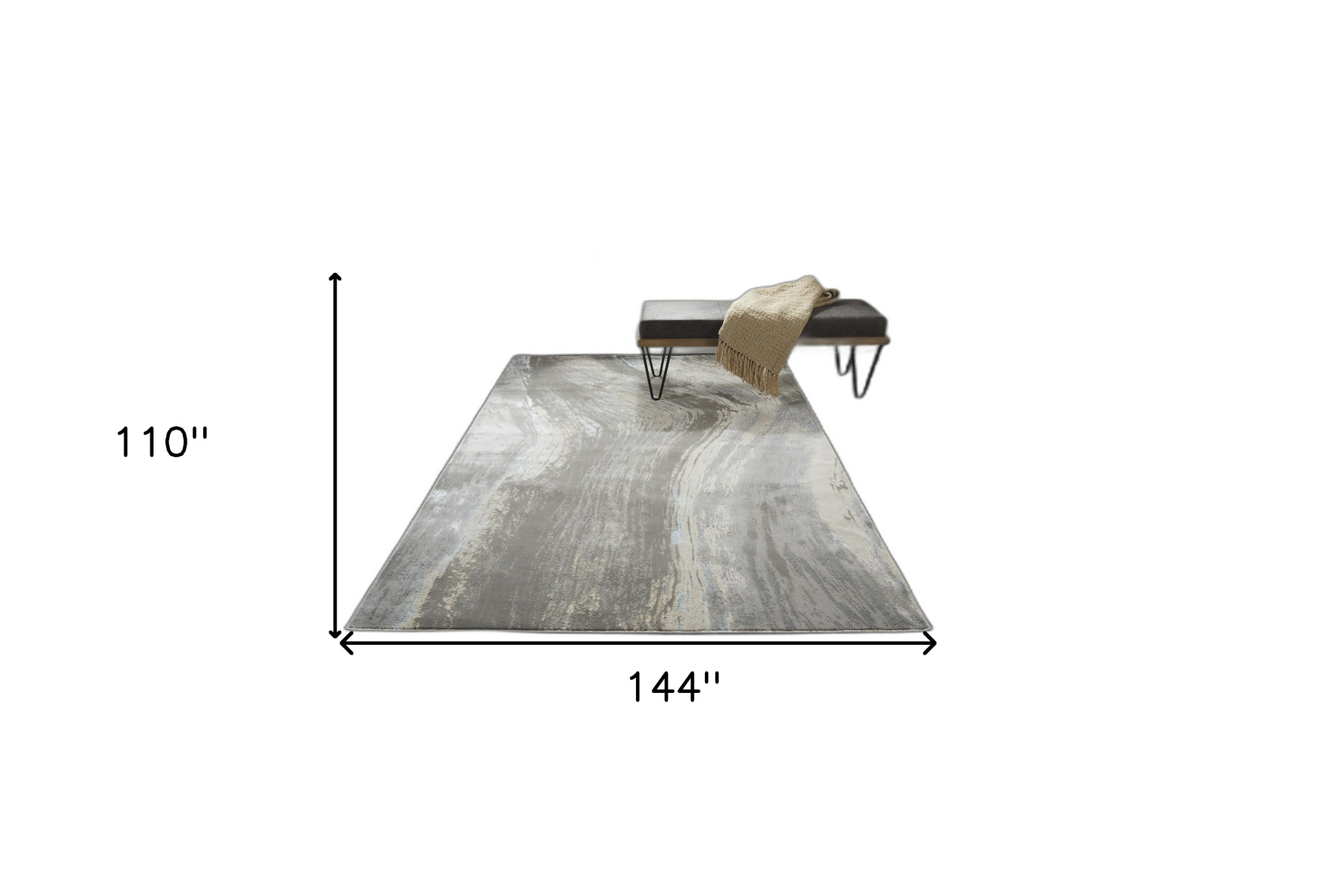 Set an inviting tone in your space with this 9' x 12' gray ivory and blue abstract area rug. This rectangle shaped rug features a abstract design in gray ivory and blue to give it visual interest. A classic shape marries with good looking design for your space This superior Turkish rug represents the highest quality and is built to last. Area Rugs help to give warmth and sense of home to your space. 0.39" H x 110" W x 144" D