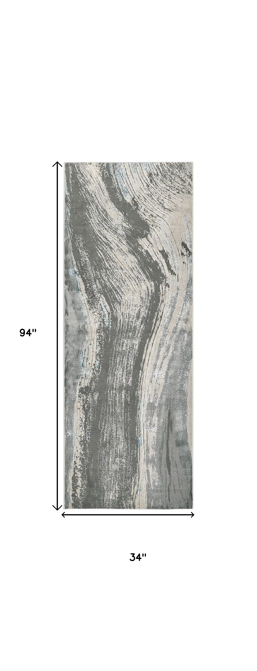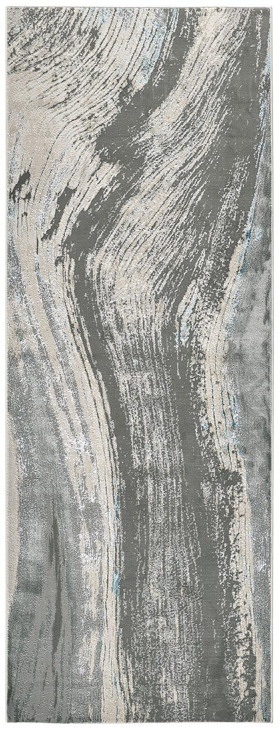 Set an inviting tone in your space with this 8-foot gray ivory and blue abstract runner rug. Ideal for spaces with kids and pets, this rug is stain resistant to help repel dirt and spilled liquids. Built to last, this rug crafted from polypropylene and polyester fibers is known for its durability and long lasting appeal. Rugs are a great way to showcase your style, hide imperfections, warm your home and reduce noise. This contemporary style runner makes a great accent for the hallway, in front of cabinets, in the laundry room, or any other space you need a narrow and long rug. 34.00-inch h x 94.00-inch w x 0.39-inch d.