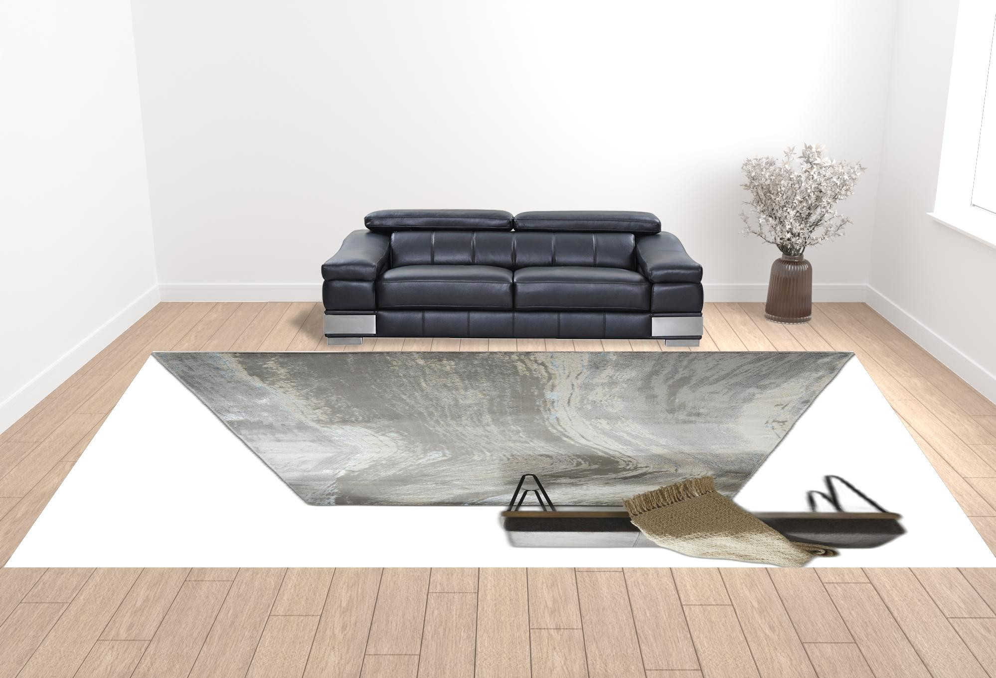 Set an inviting tone in your space with this 13' x 20' gray ivory and blue abstract area rug. This rectangle shaped rug features a abstract design in gray ivory and blue to give it visual interest. A classic shape marries with good looking design for your space This superior Turkish rug represents the highest quality and is built to last. Area Rugs help to give warmth and sense of home to your space. 0.39" H x 156" W x 240" D