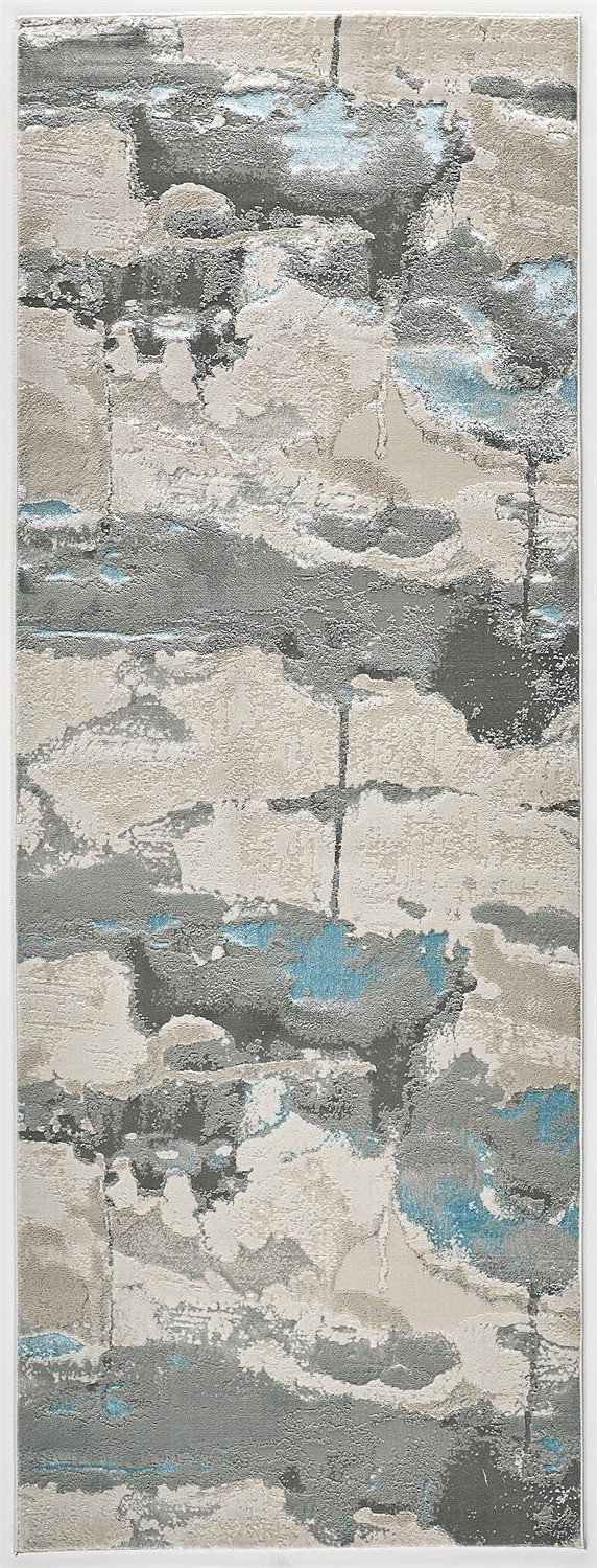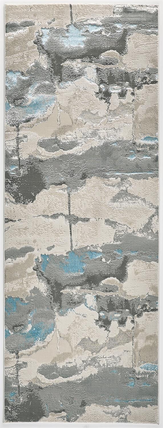 Add some artistry to your room with this 8-foot blue and gray abstract power loom runner rug. This runner shaped rug features a abstract design in blue and gray to give it visual interest. A classic shape marries with good looking design for your space ideal for spaces with kids and pets, this rug is stain resistant to help repel stains and spilled liquids. Place this area rug against a hardwood or tile floor and it will enliven your living space with style and sophistication. 34-inch H x 94-inch W x 0.39-inch D