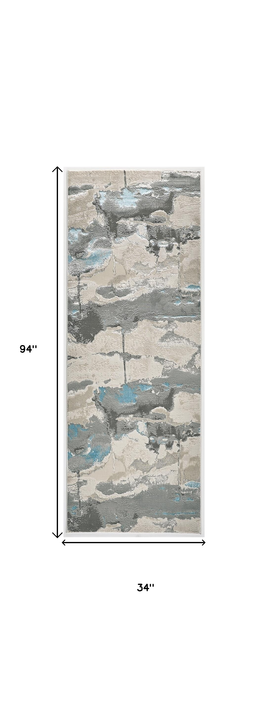 abstract power loom runner rug, power loom runner rug, loom runner rug, gray abstract power loom runner, blue gray abstract power loom |