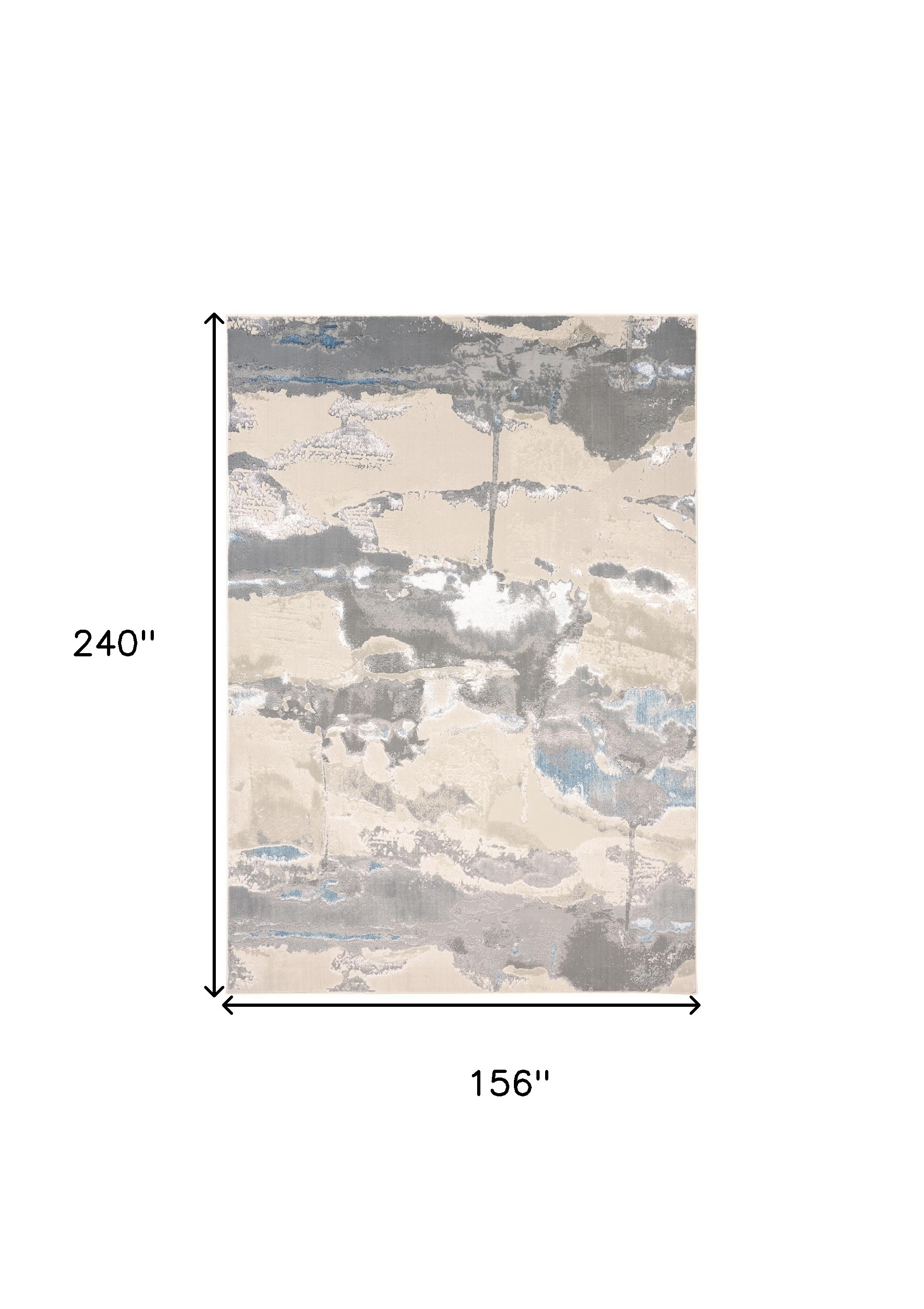Add great coloration and comfortable texture to your space with this 13-foot x 20-foot gray ivory and blue abstract area rug. Built to last, this rug crafted from polyester fibers is known for its durability and long lasting appeal. Rugs are a great way to showcase your style, hide imperfections, warm your home and reduce noise. This larger sized, modern styled rug is ready to create a focal point or statement piece in your room. 156.00-inch h x 240.00-inch w x 0.39-inch d.