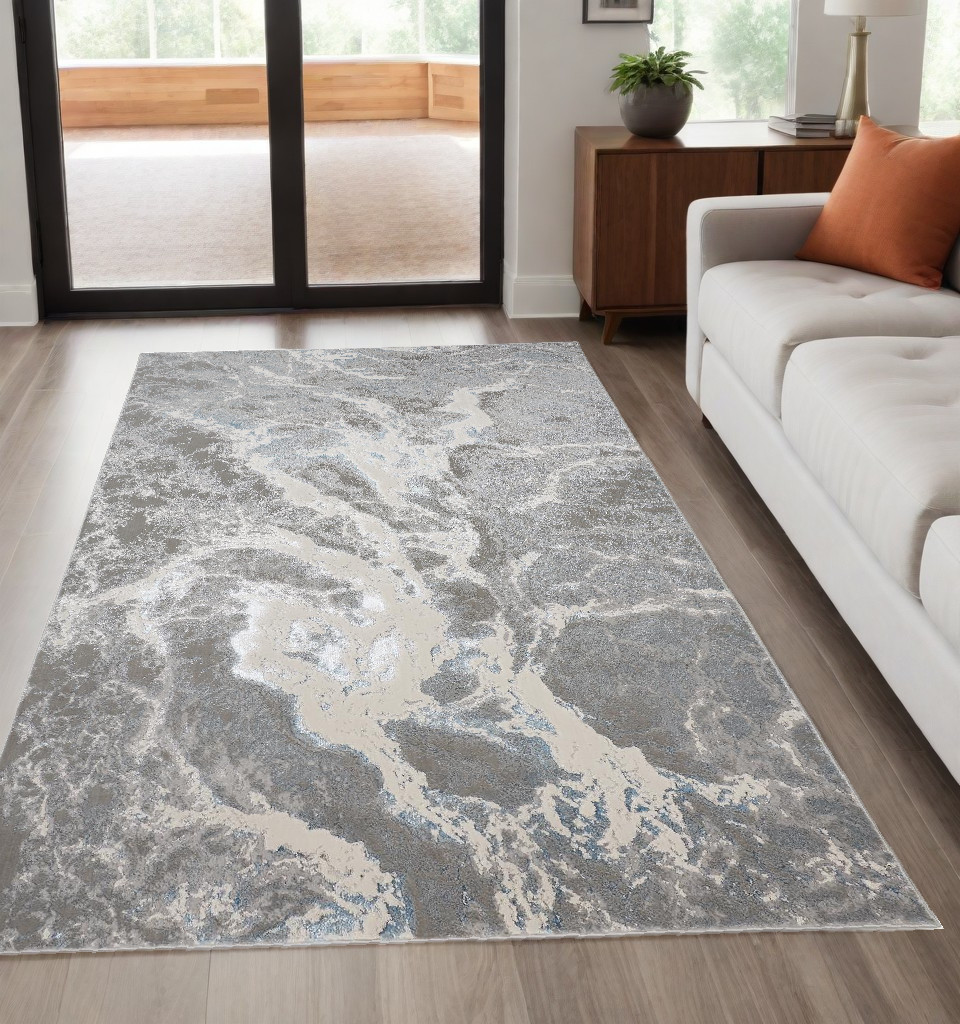 Add great coloration and comfortable texture to your space with this 5-foot x 8-foot gray and ivory abstract power loom area rug. This rectangle shaped rug features a abstract design that will add a functional and decorative accent to your space. Ideal for spaces with kids and pets, this rug is stain resistant to help repel dirt and spilled liquids. This larger sized rug is ideal to create a focal point or statement piece in your room. 60-inch h x 96-inch w x 0.39-inch d