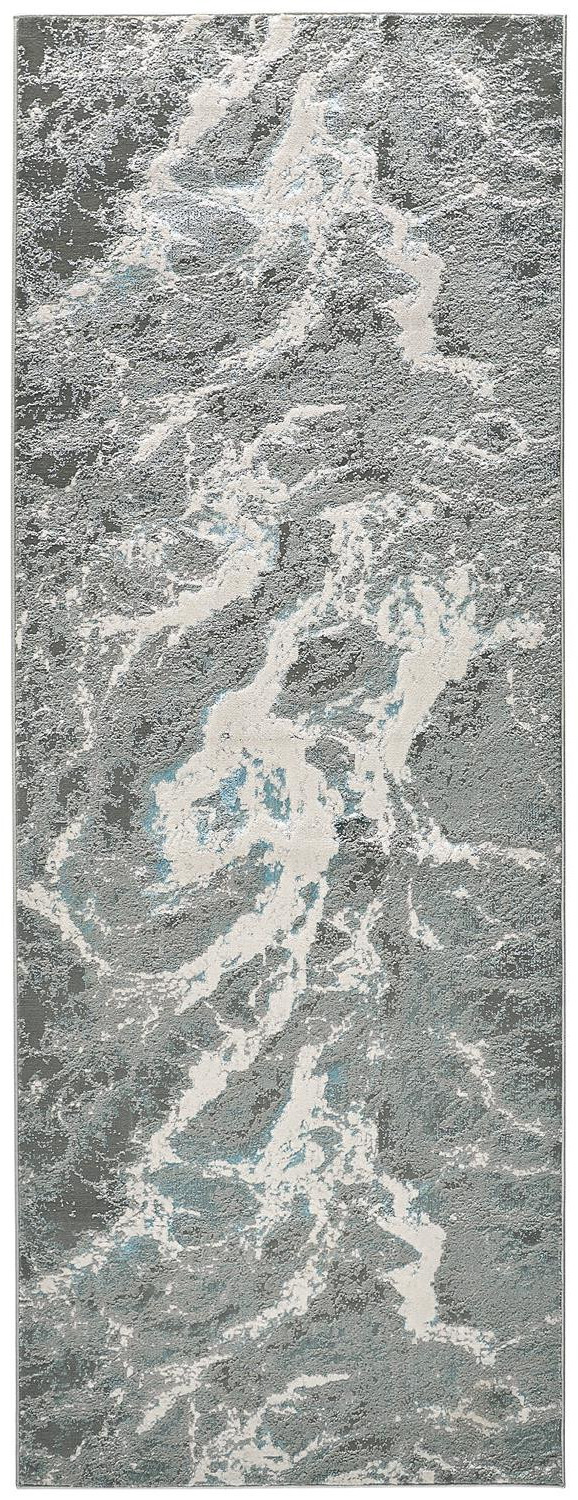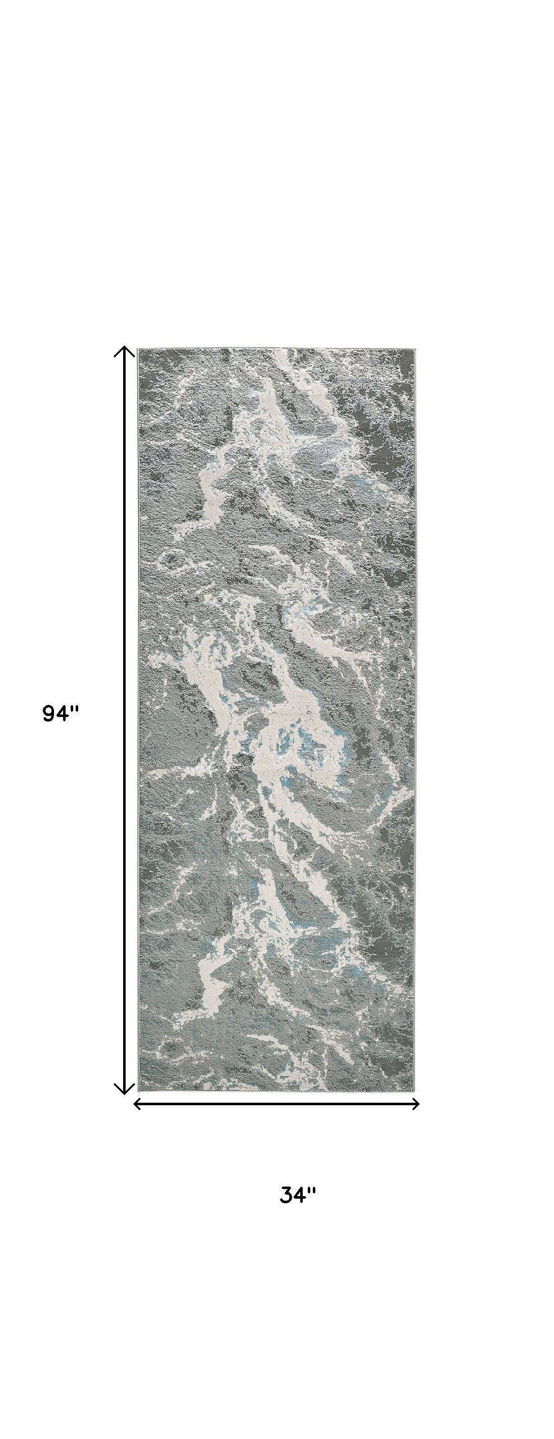 Add great coloration and comfortable texture to your space with this 8-foot gray and ivory abstract power loom runner rug. This runner shaped rug features a abstract design that will add a functional and decorative accent to your space. Ideal for spaces with kids and pets, this rug is stain resistant to help repel dirt and spilled liquids. This smaller sized rug is just what you need for your walkway, or in front of door, cabinet, refrigerator, or chair. 34-inch h x 94-inch w x 0.39-inch d