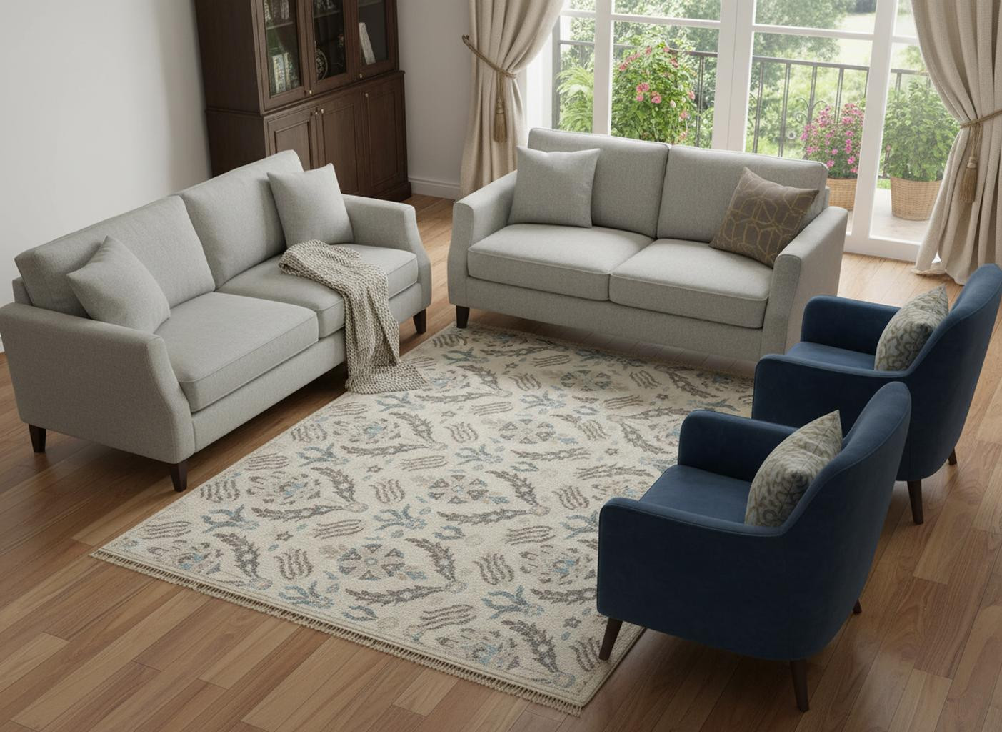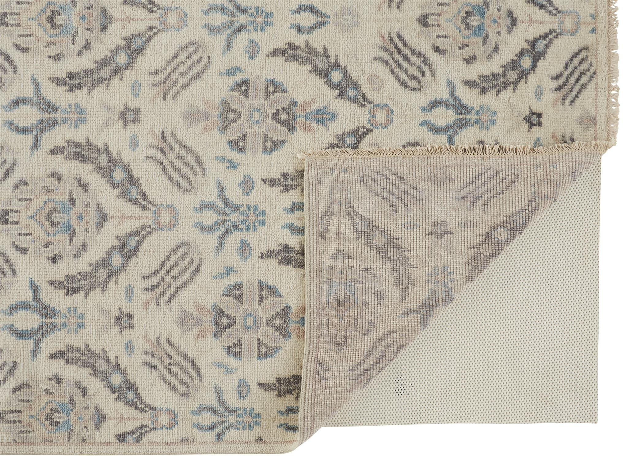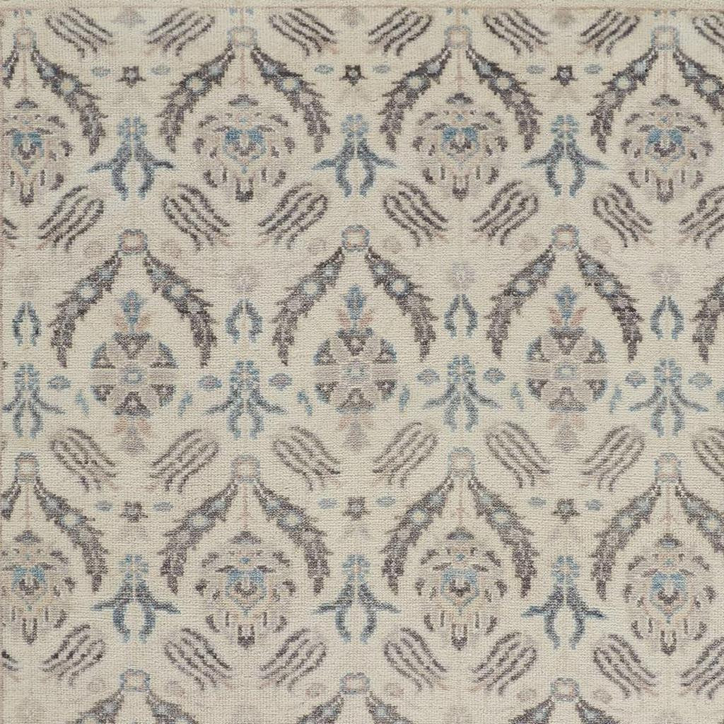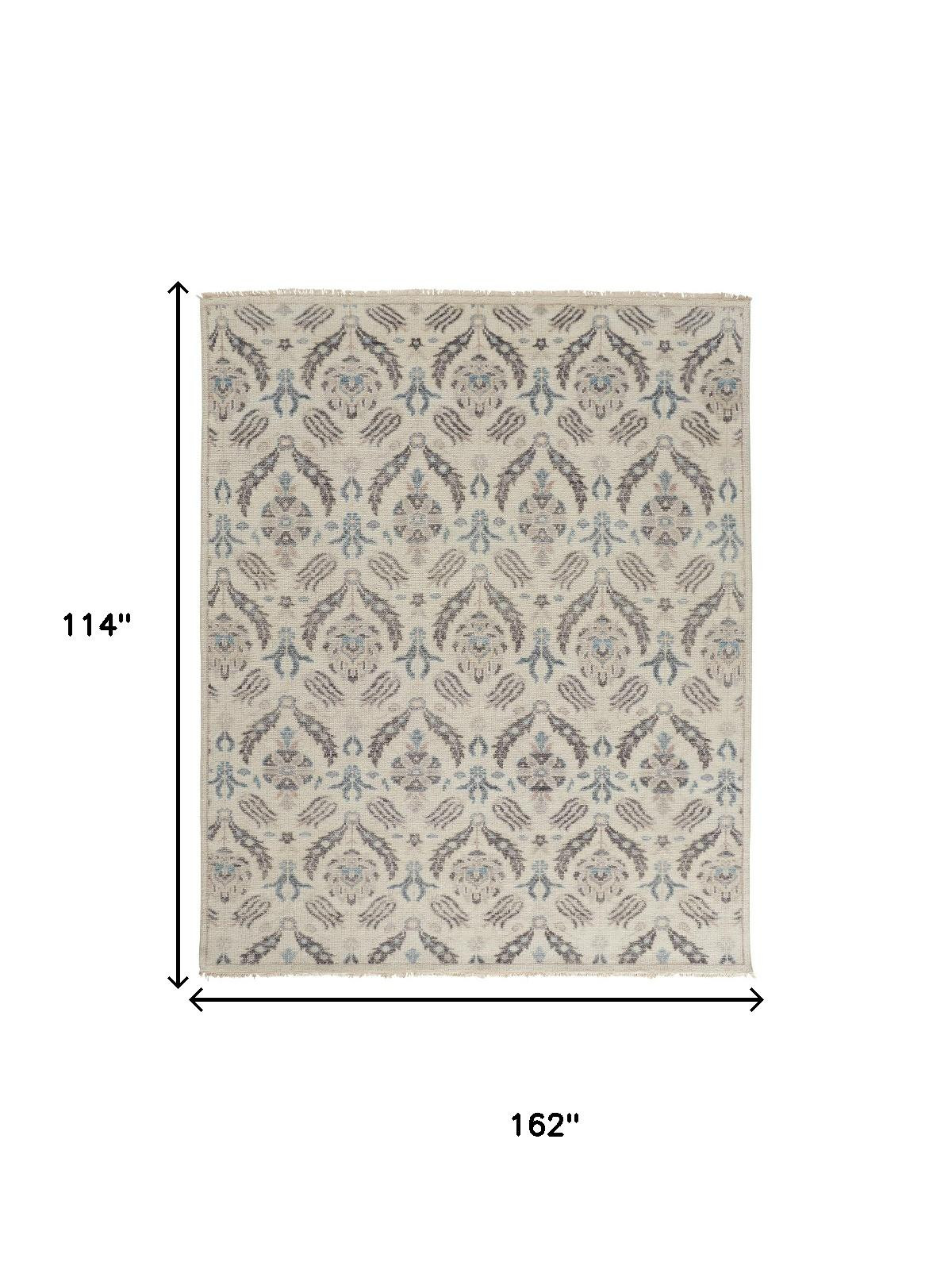 Add great coloration and comfortable texture to your space with this 10' x 13' ivory gray and blue wool floral hand knotted stain resistant area rug. This rectangle shaped rug features a floral design in ivory gray and blue to give it visual interest. A classic shape marries with good looking design for your space Ideal for spaces with kids and pets, this rug is stain resistant to help repel stains and spilled liquids. Crafted by skilled artisans, this hand knotted rug is genuine and unique. No two will be exactly alike. Area Rugs help to give warmth and sense of home to your space. 0.28" H x 114" W x 162" D
