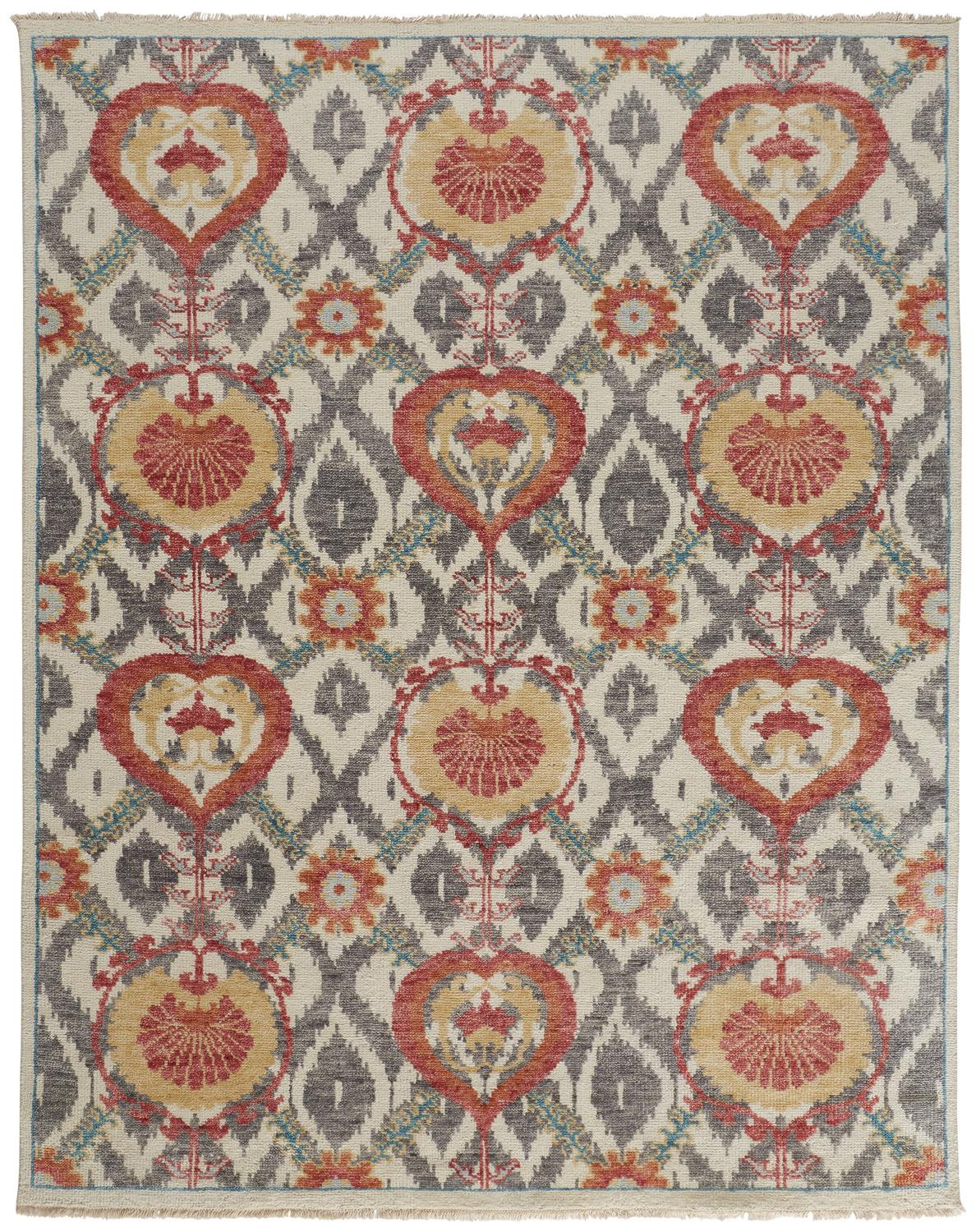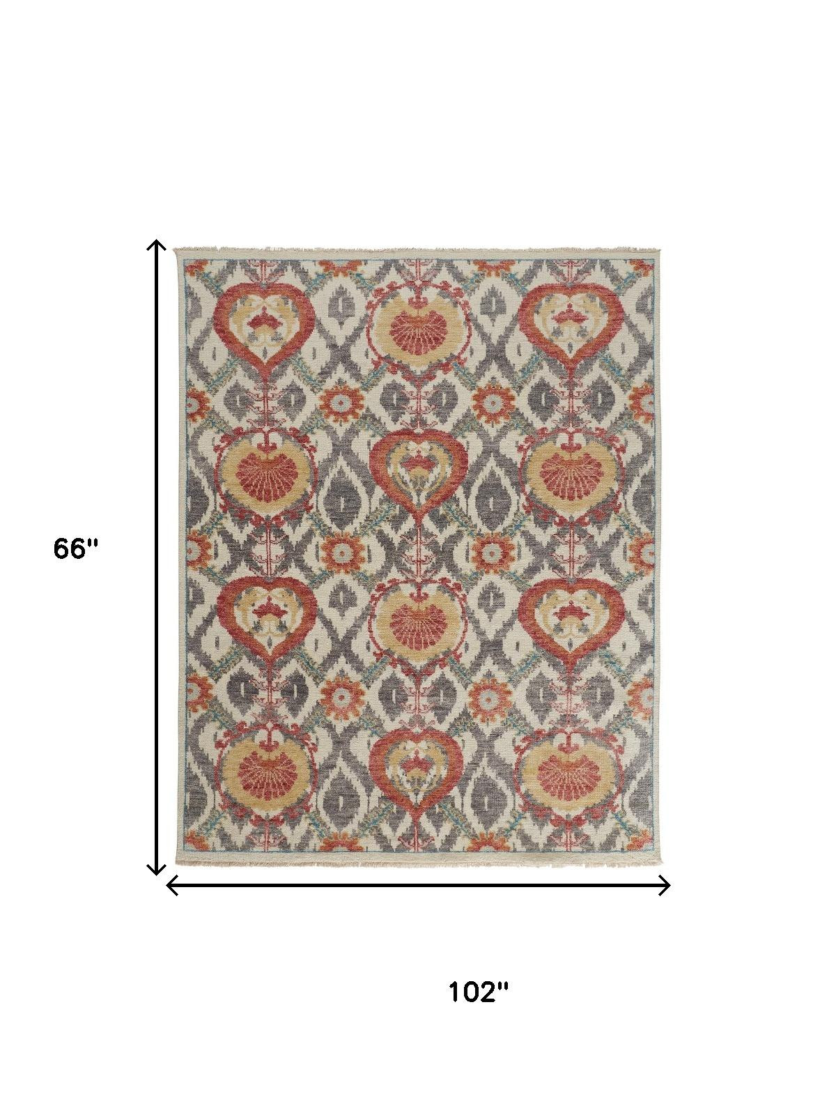 Set an inviting tone in your space with this 5' x 8' orange and gray wool floral hand knotted stain resistant area rug. This rectangle shaped rug features a floral design in orange and gray to give it visual interest. A classic shape marries with good looking design for your space Ideal for spaces with kids and pets, this rug is stain resistant to help repel stains and spilled liquids. Crafted by skilled artisans, this hand knotted rug is genuine and unique. No two will be exactly alike. Place this area rug against a hardwood or tile floor and it will enliven your living space with style and sophistication. 0.28" H x 66" W x 102" D
