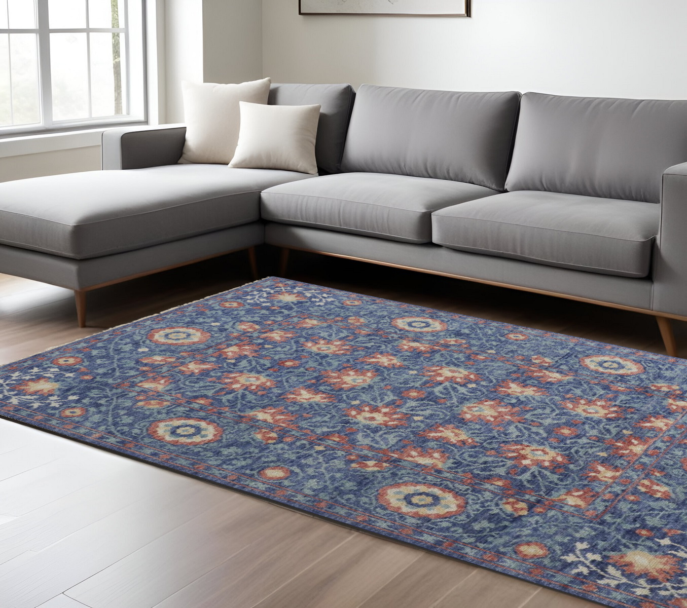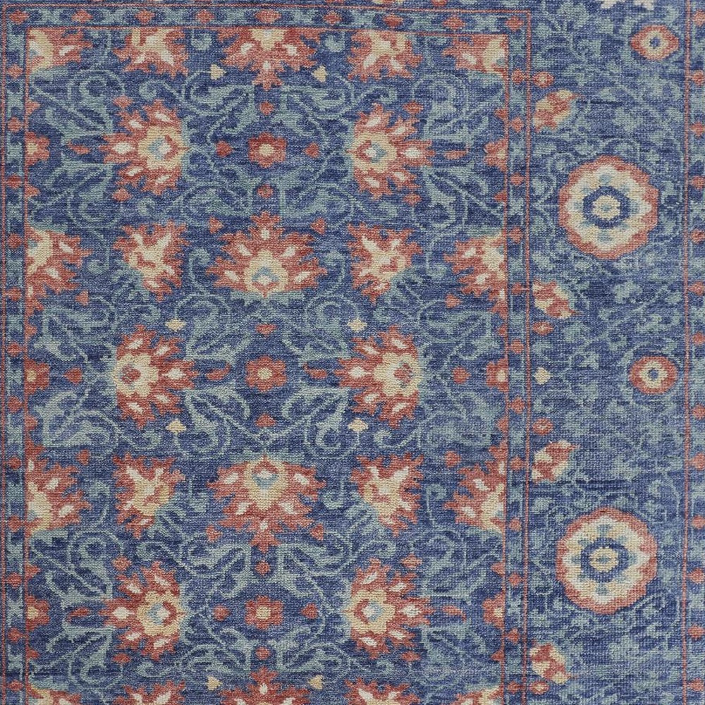Add great coloration and comfortable texture to your space with this 8' x 10' blue and red wool floral hand knotted stain resistant area rug. This rectangle shaped rug features a floral design in blue and red to give it visual interest. A classic shape marries with good looking design for your space Ideal for spaces with kids and pets, this rug is stain resistant to help repel stains and spilled liquids. Crafted by skilled artisans, this hand knotted rug is genuine and unique. No two will be exactly alike. Area Rugs help to give warmth and sense of home to your space. 0.28" H x 93" W x 117" D