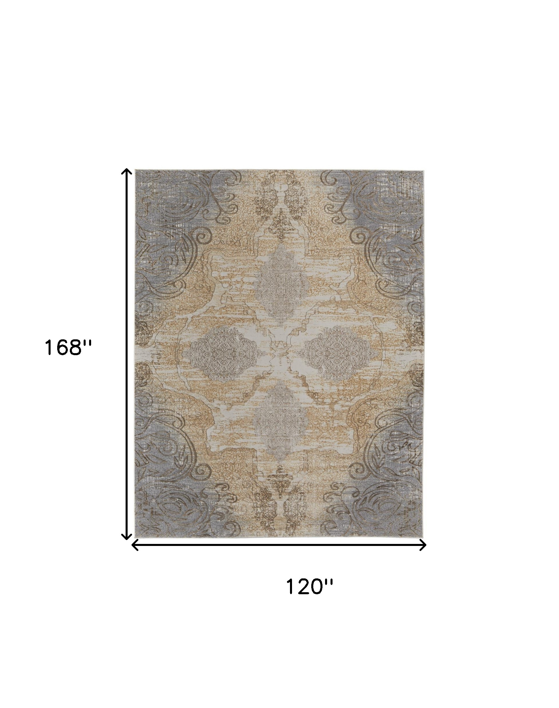 Add some artistry to your room with this 10-foot x 14-foot tan and gray medallion area rug. This rectangle-shaped beauty features a luxurious viscose material that enhances its elegance, while the power loom technique ensures durability and precision in its design. The machine-made construction provides a consistent quality that is easy to maintain and perfect for high-traffic areas. With a latex backing, it offers excellent grip, making it safe for use throughout your home. Pair it with a rug pad for added cushioning and longevity in your living space 120.00-inch h x 168.00-inch w x 0.39-inch d.