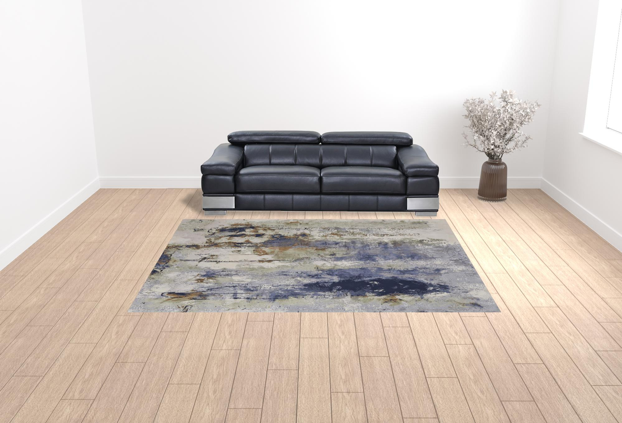 Set an inviting tone in your space with this 9' x 12' blue orange and ivory abstract power loom area rug. This rectangle shaped rug features a abstract design in blue orange and ivory to give it visual interest. A classic shape marries with good looking design for your space This superior Turkish rug represents the highest quality and is built to last. Area Rugs help to give warmth and sense of home to your space. 0.39" H x 108" W x 144" D