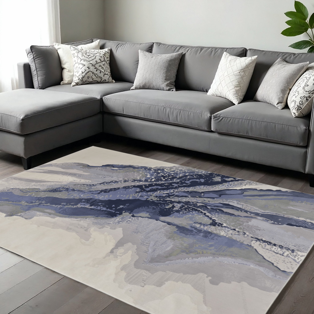 gray ivory abstract area rug, ivory abstract area rug, abstract area rug, blue gray ivory abstract area, 9' X 12' blue gray ivory abstract |