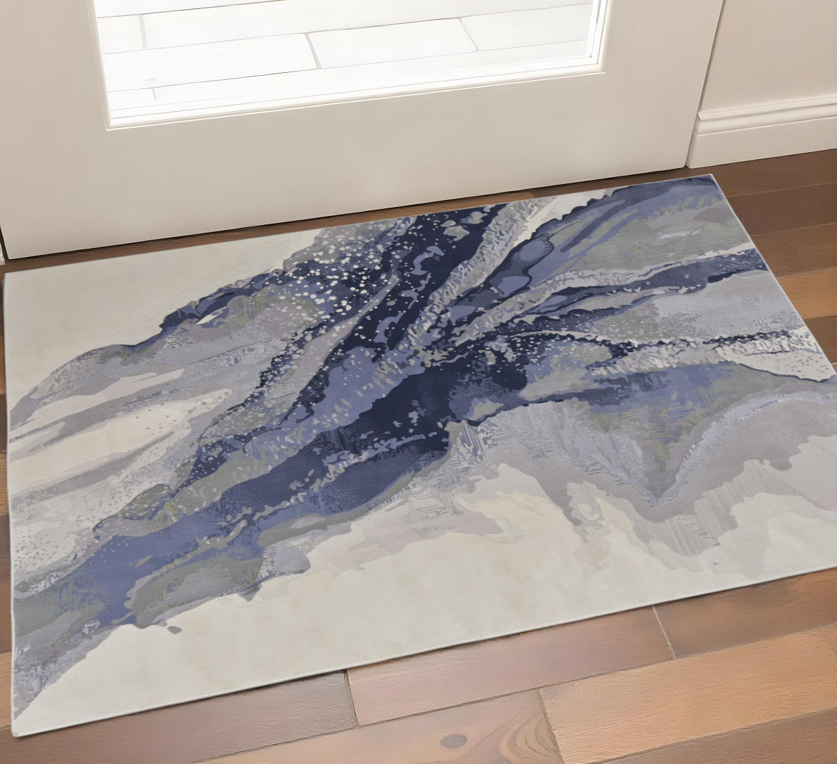 Set an inviting tone in your space with this 2-foot x 3-foot blue gray and ivory abstract area rug. Built to last, this rug crafted from polypropylene and polyester fibers is known for its durability and long lasting appeal. Rugs are a great way to showcase your style, hide imperfections, warm your home and reduce noise. This smaller sized, contemporary styled rug is just what you need for your walkway, bedside, in front of door, cabinet, refrigerator, or chair. 24.00-inch h x 36.00-inch w x 0.39-inch d.