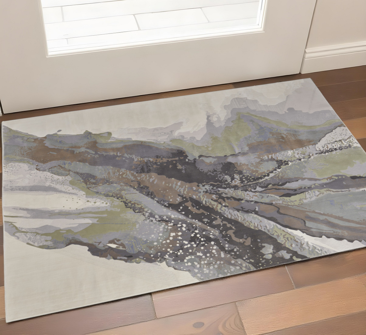 This 2-foot x 3-foot green purple and ivory abstract area rug, is a great way to add warmth to a room. Built to last, this rug crafted from polypropylene and polyester fibers is known for its durability and long lasting appeal. Rugs are a great way to showcase your style, hide imperfections, warm your home and reduce noise. This smaller sized, contemporary styled rug is just what you need for your walkway, bedside, in front of door, cabinet, refrigerator, or chair. 24.00-inch h x 36.00-inch w x 0.39-inch d.