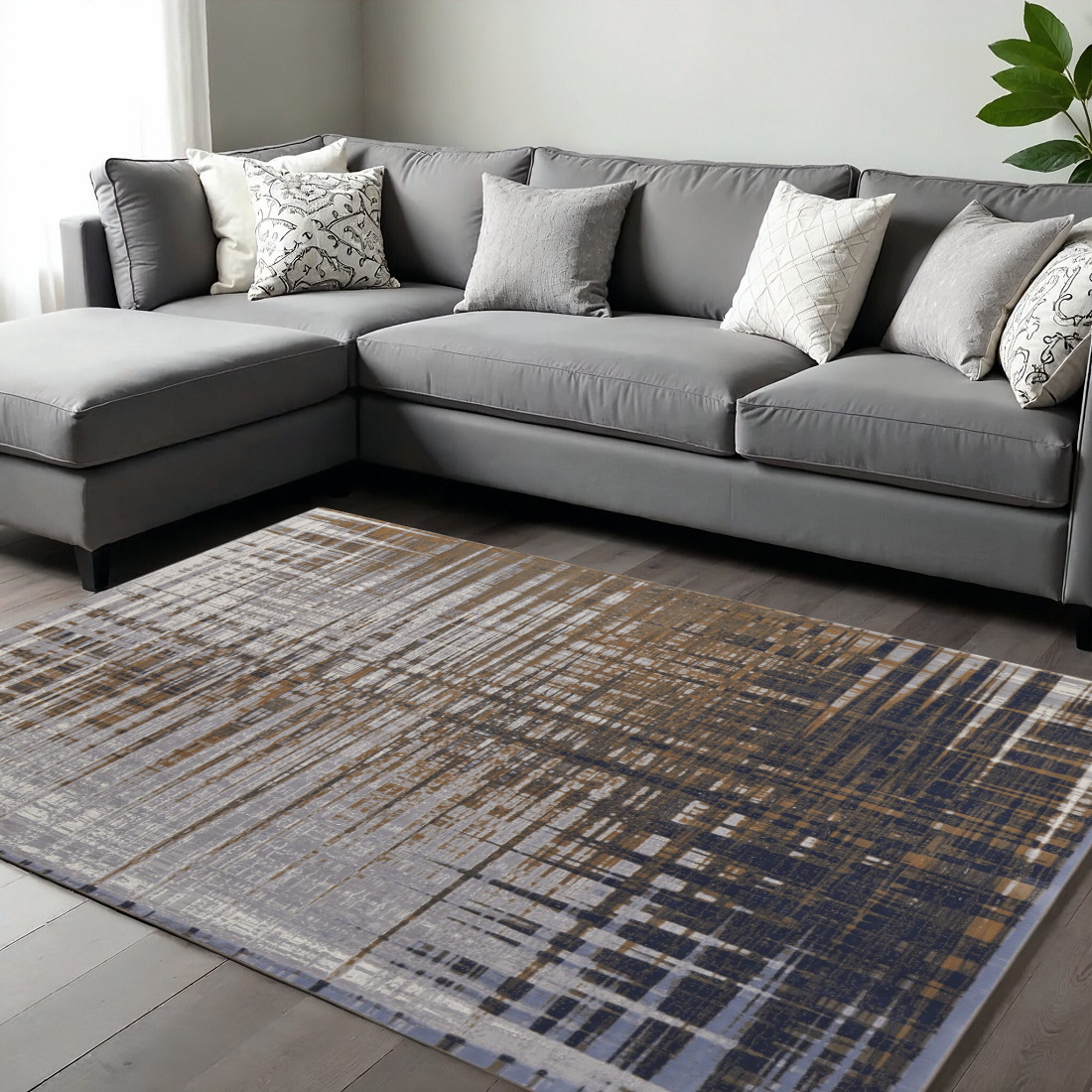 Add great coloration and comfortable texture to your space with this 10-foot x 13-foot blue orange and gray abstract area rug. Built to last, this rug crafted from polypropylene fibers is known for its durability and long lasting appeal. Rugs are a great way to showcase your style, hide imperfections, warm your home and reduce noise. 120.00-inch h x 158.00-inch w x 0.39-inch d.