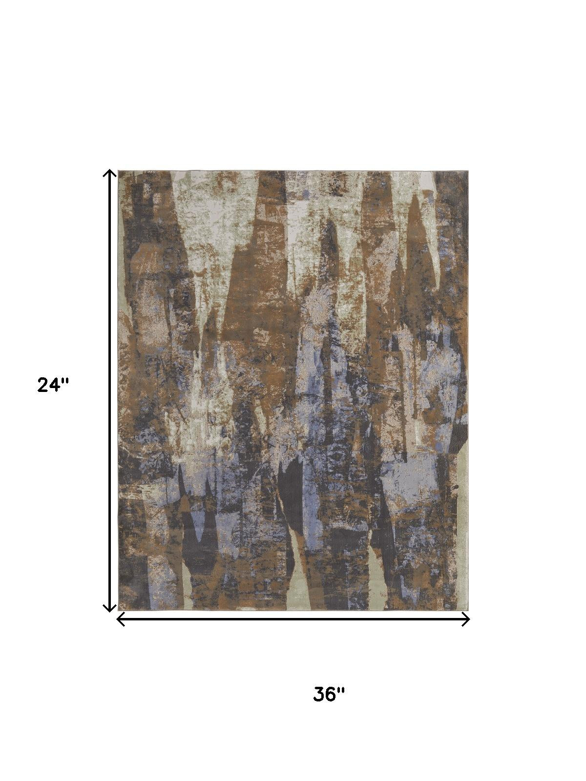 Set an inviting tone in your space with this 2-foot x 3-foot brown blue and ivory abstract distressed area rug. Built to last, this rug crafted from polypropylene fibers is known for its durability and long lasting appeal. Rugs are a great way to showcase your style, hide imperfections, warm your home and reduce noise. 24.00-inch h x 36.00-inch w x 0.39-inch d.