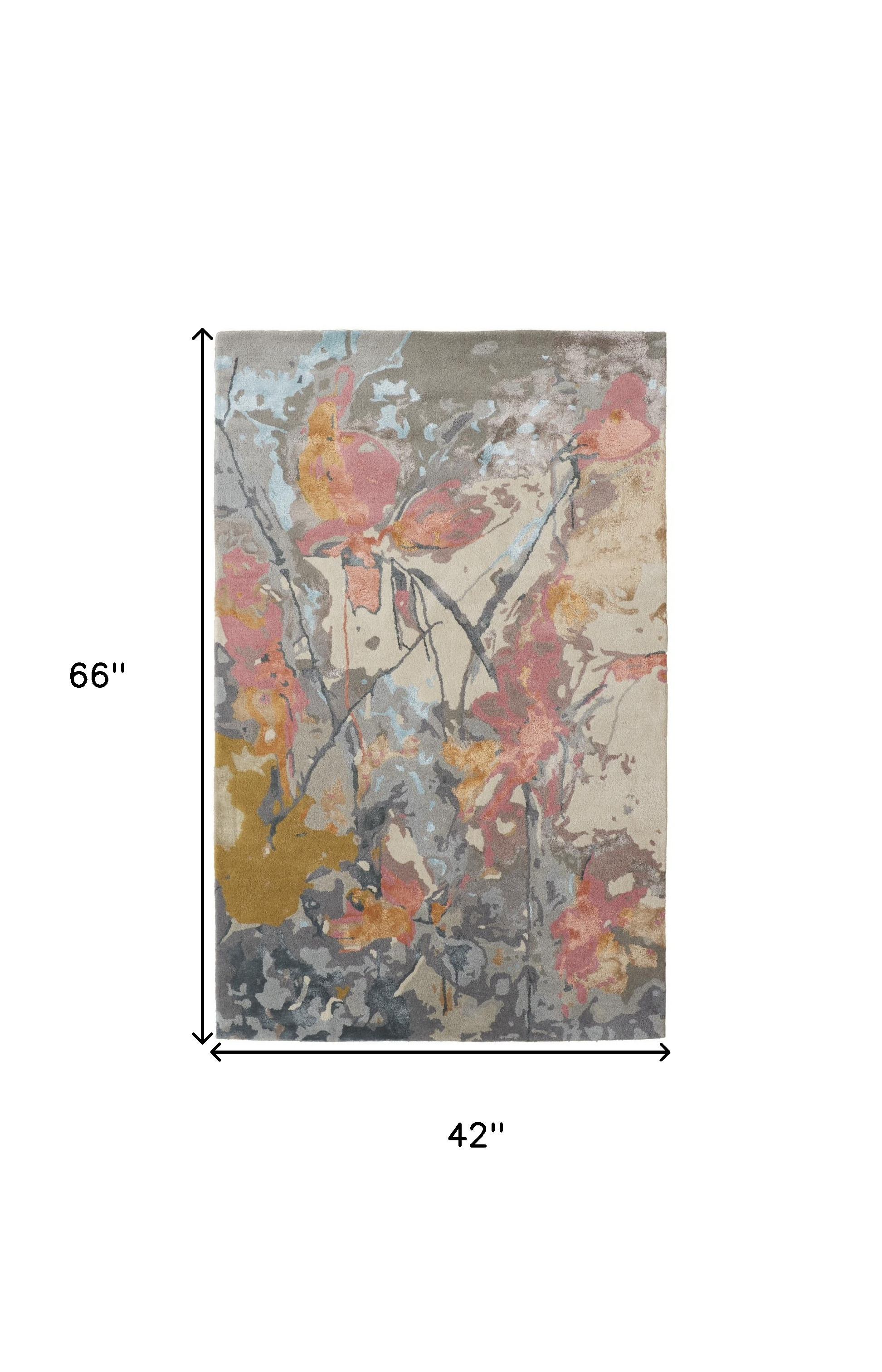 floral tufted handmade area rug, tufted handmade area rug, handmade area rug, wool floral tufted handmade area, blue pink gray wool floral |