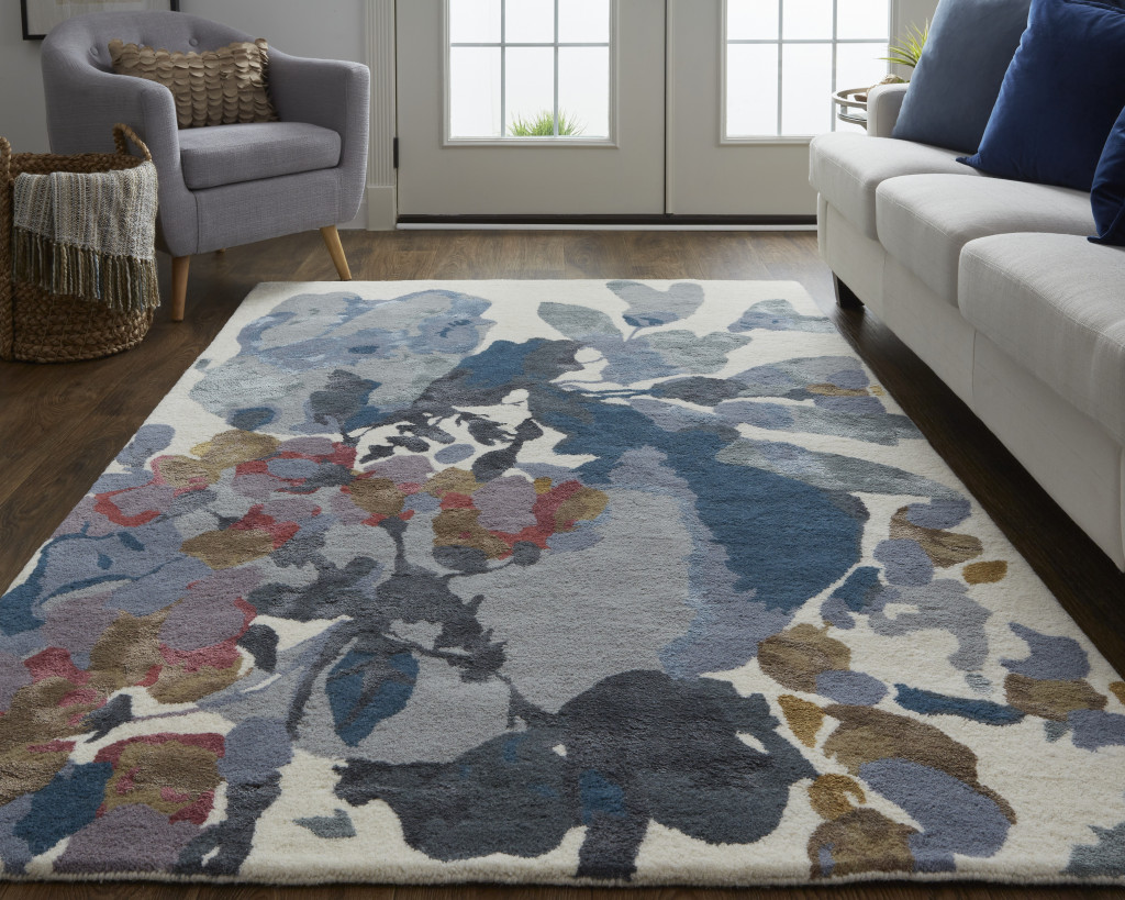 Add some artistry to your room with this 8-foot x 10-foot blue gray and pink wool floral hand tufted area rug. This rectangle shaped rug features a floral design in blue gray and pink to give it visual interest. A classic shape marries with good looking design for your space area rugs help to give warmth and sense of home to your space. 96-inch H x 120-inch W x 0.59-inch D