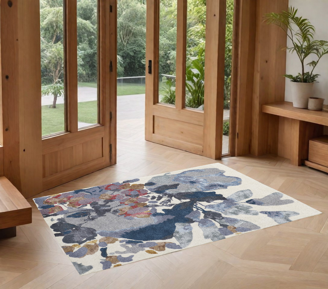 Add great coloration and comfortable texture to your space with this 2-foot x 3-foot blue gray and pink wool floral hand tufted area rug. This rectangle shaped rug features a floral design in blue gray and pink to give it visual interest. A classic shape marries with good looking design for your space place this area rug against a hardwood or tile floor and it will enliven your living space with style and sophistication. 24-inch H x 36-inch W x 0.59-inch D