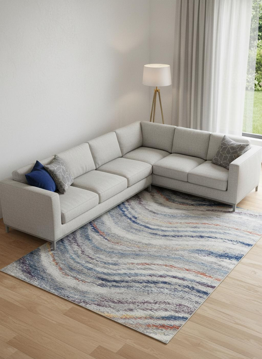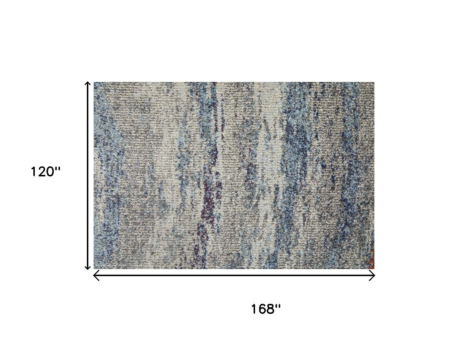 Add great coloration and comfortable texture to your space with this 10' x 14' blue gray and orange abstract power loom stain resistant area rug. This rectangle shaped rug features a abstract design in blue gray and orange to give it visual interest. A classic shape marries with good looking design for your space This superior Turkish rug represents the highest quality and is built to last. Ideal for spaces with kids and pets, this rug is stain resistant to help repel stains and spilled liquids. Area Rugs help to give warmth and sense of home to your space. 0.39" H x 120" W x 168" D