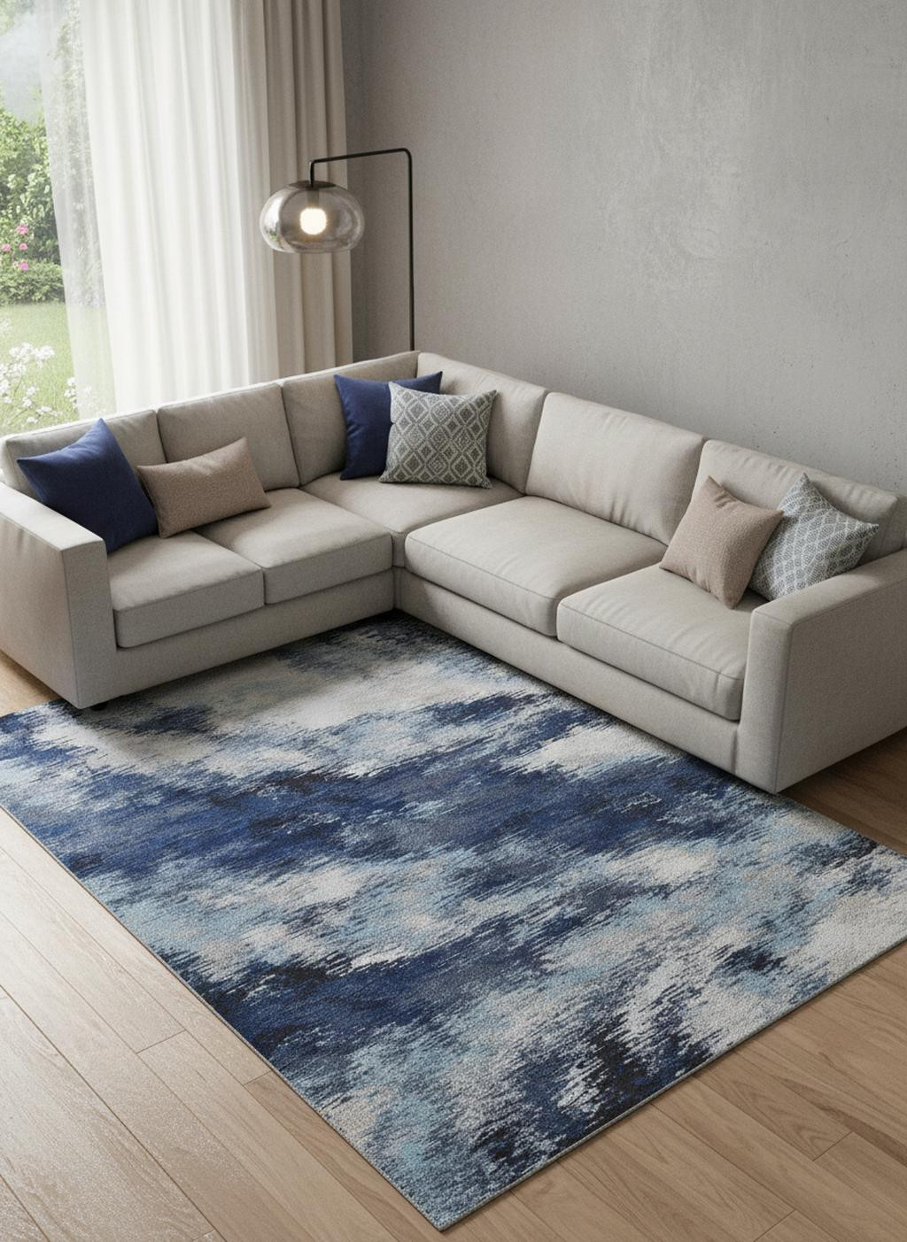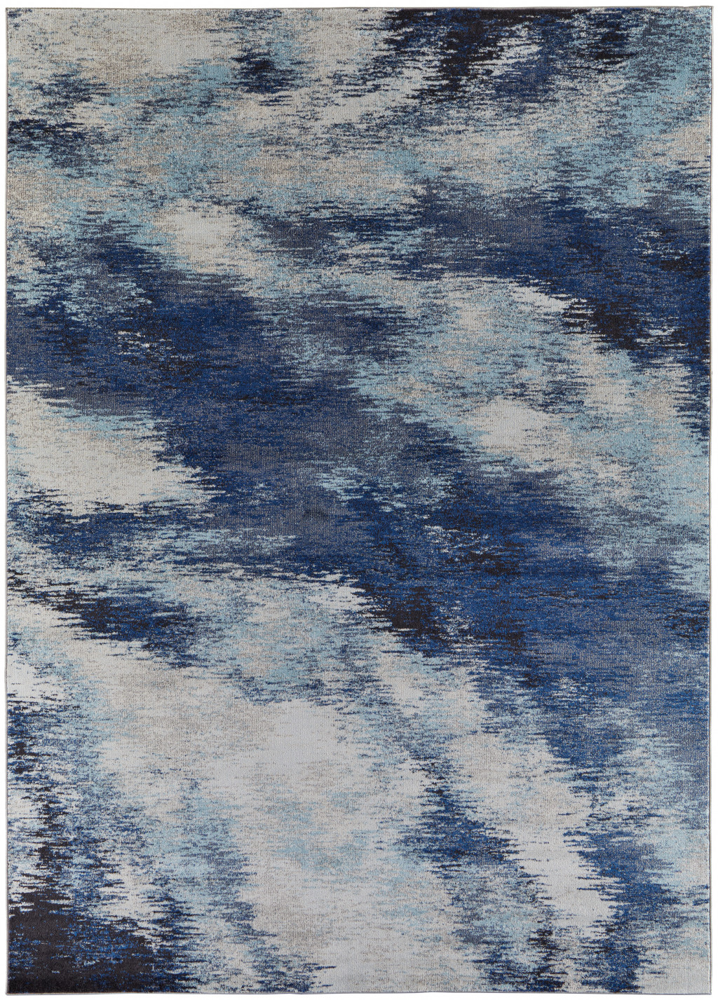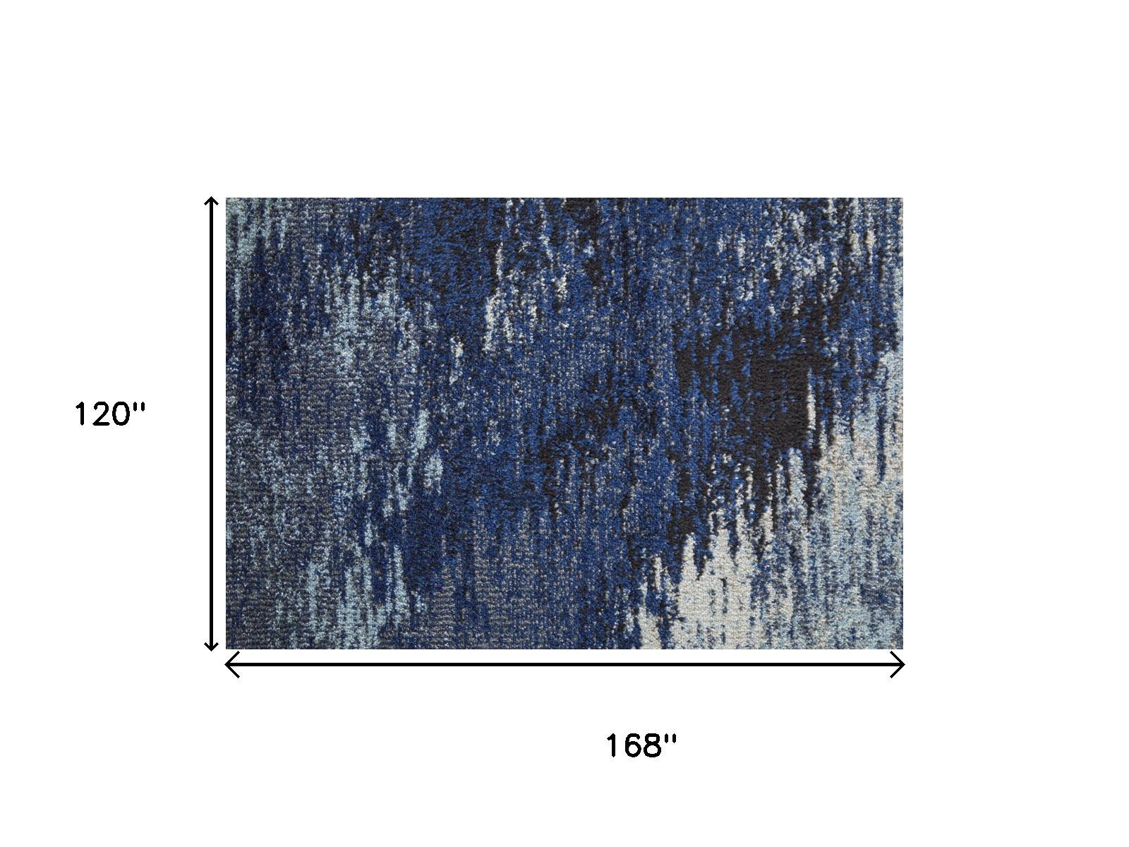 Set an inviting tone in your space with this 10' x 14' blue and ivory abstract power loom stain resistant area rug. This rectangle shaped rug features a abstract design in blue and ivory to give it visual interest. A classic shape marries with good looking design for your space This superior Turkish rug represents the highest quality and is built to last. Ideal for spaces with kids and pets, this rug is stain resistant to help repel stains and spilled liquids. Area Rugs help to give warmth and sense of home to your space. 0.39" H x 120" W x 168" D