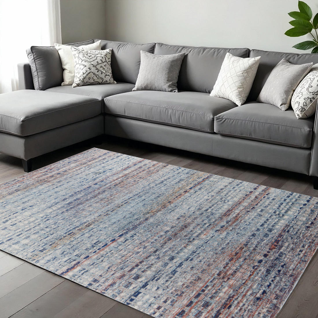 Add great coloration and comfortable texture to your space with this 10-foot x 14-foot ivory blue and orange abstract area rug. Ideal for spaces with kids and pets, this rug is stain resistant to help repel dirt and spilled liquids. Built to last, this rug crafted from polypropylene fibers is known for its durability and long lasting appeal. Rugs are a great way to showcase your style, hide imperfections, warm your home and reduce noise. 120.00-inch h x 168.00-inch w x 0.39-inch d.