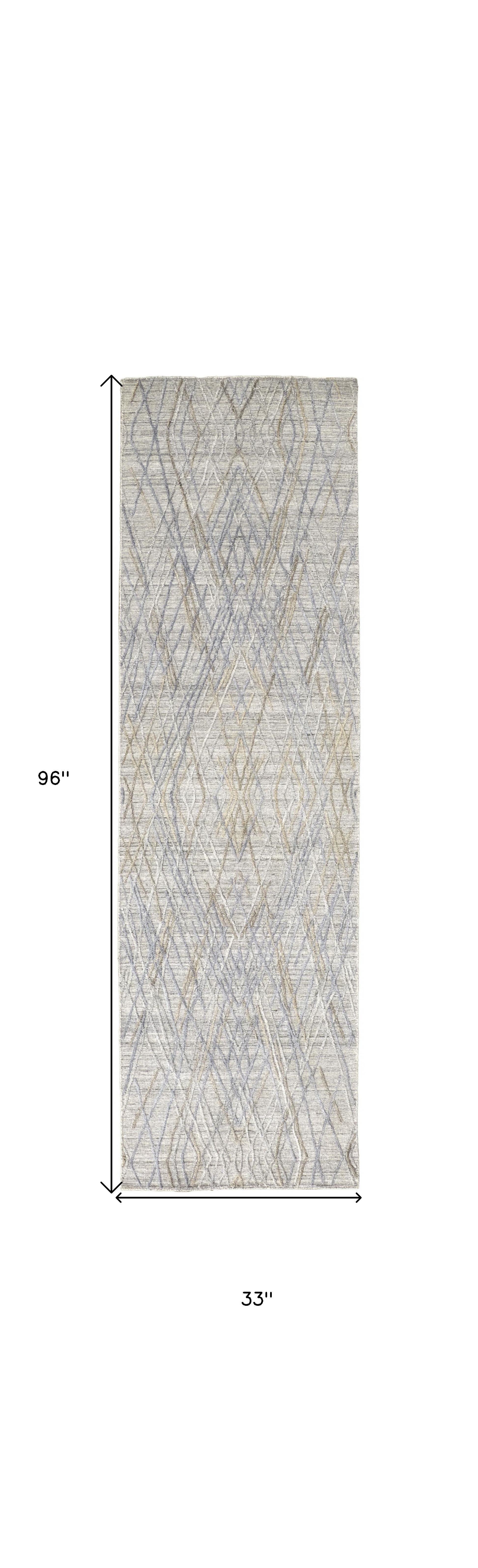 This 8-foot blue and gray abstract hand woven runner rug, is a great way to add warmth to a room. This runner shaped rug features a abstract design in blue and gray to give it visual interest. A classic shape marries with good looking design for your space crafted by skilled artisans, this hand woven rug is genuine and unique. No two will be exactly alike. 33-inch H x 96-inch W x 0.4-inch D