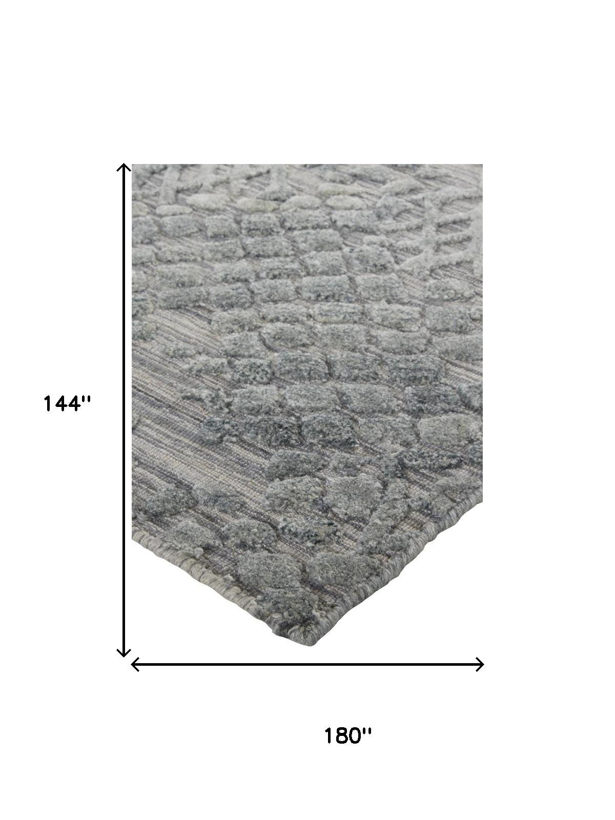 This 12' x 15' gray abstract hand woven area rug, is a great way to add warmth to a room. This rectangle shaped rug features a abstract design in gray to give it visual interest. A classic shape marries with good looking design for your space Crafted by skilled artisans, this hand woven rug is genuine and unique. No two will be exactly alike. Area Rugs help to give warmth and sense of home to your space. 0.4" H x 144" W x 180" D