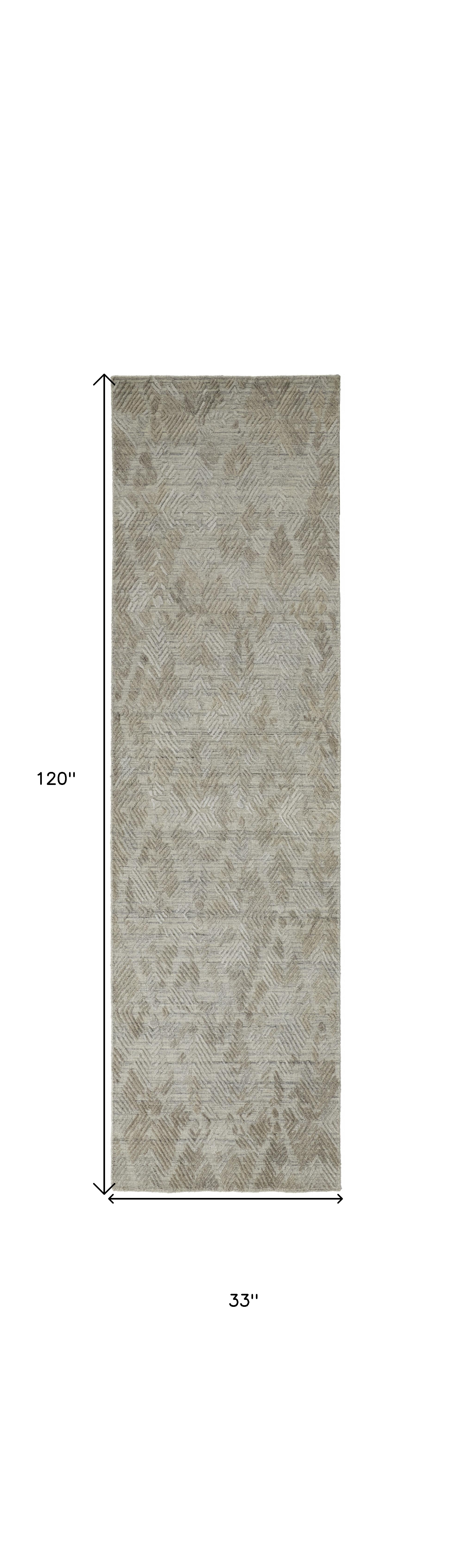 Add great coloration and comfortable texture to your space with this 10-foot taupe and gray abstract hand woven runner rug. Crafted by skilled artisans, this hand woven rug is genuine and unique. No two will be exactly alike. Rugs are a great way to showcase your style, hide imperfections, warm your home and reduce noise. 33.00-inch h x 120.00-inch w x 0.40-inch d.