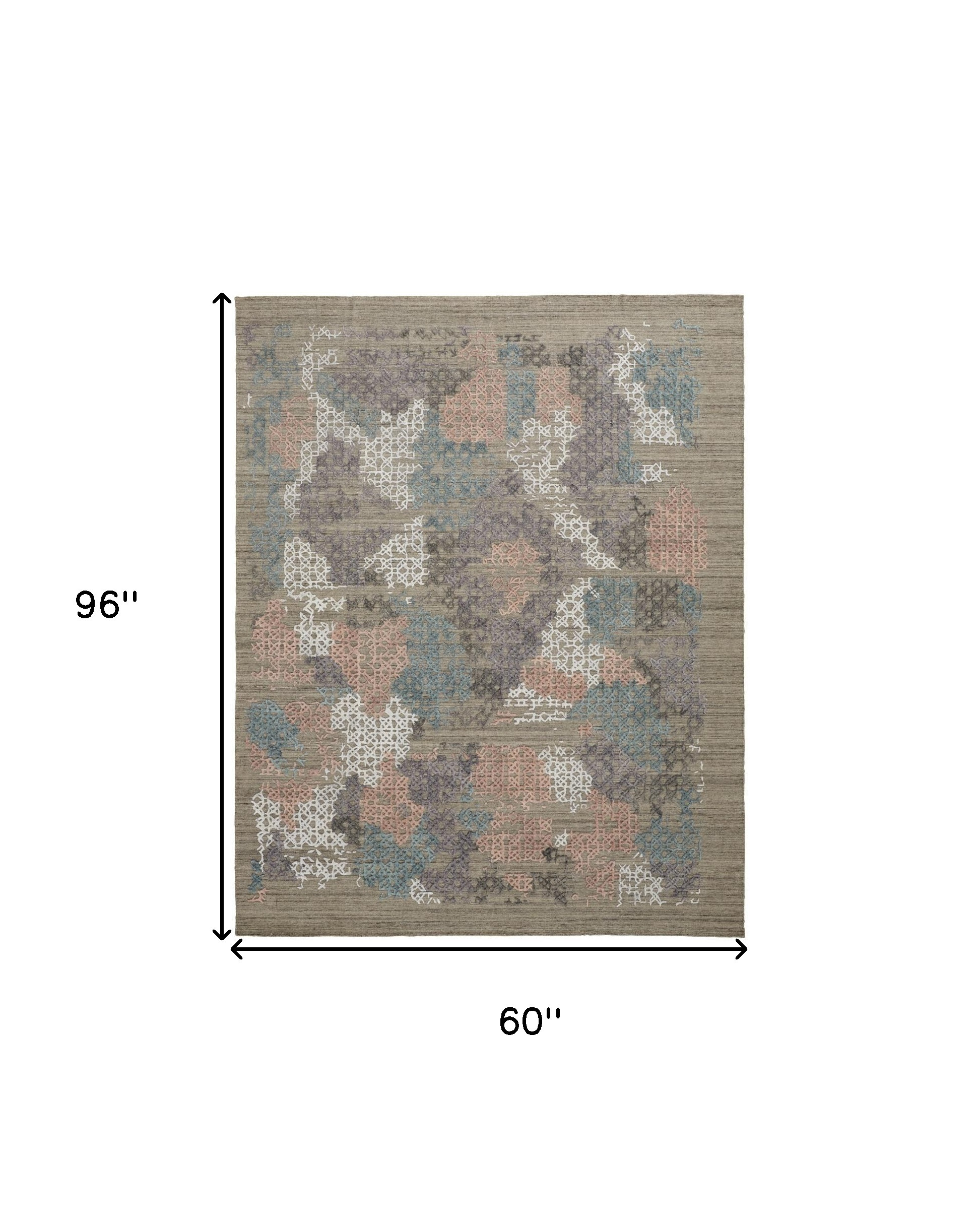This 5' x 8' pink blue and taupe abstract hand woven area rug, is a great way to add warmth to a room. This rectangle shaped rug features a abstract design in pink blue and taupe to give it visual interest. A classic shape marries with good looking design for your space Crafted by skilled artisans, this hand woven rug is genuine and unique. No two will be exactly alike. Area Rugs help to give warmth and sense of home to your space. 0.4" H x 60" W x 96" D