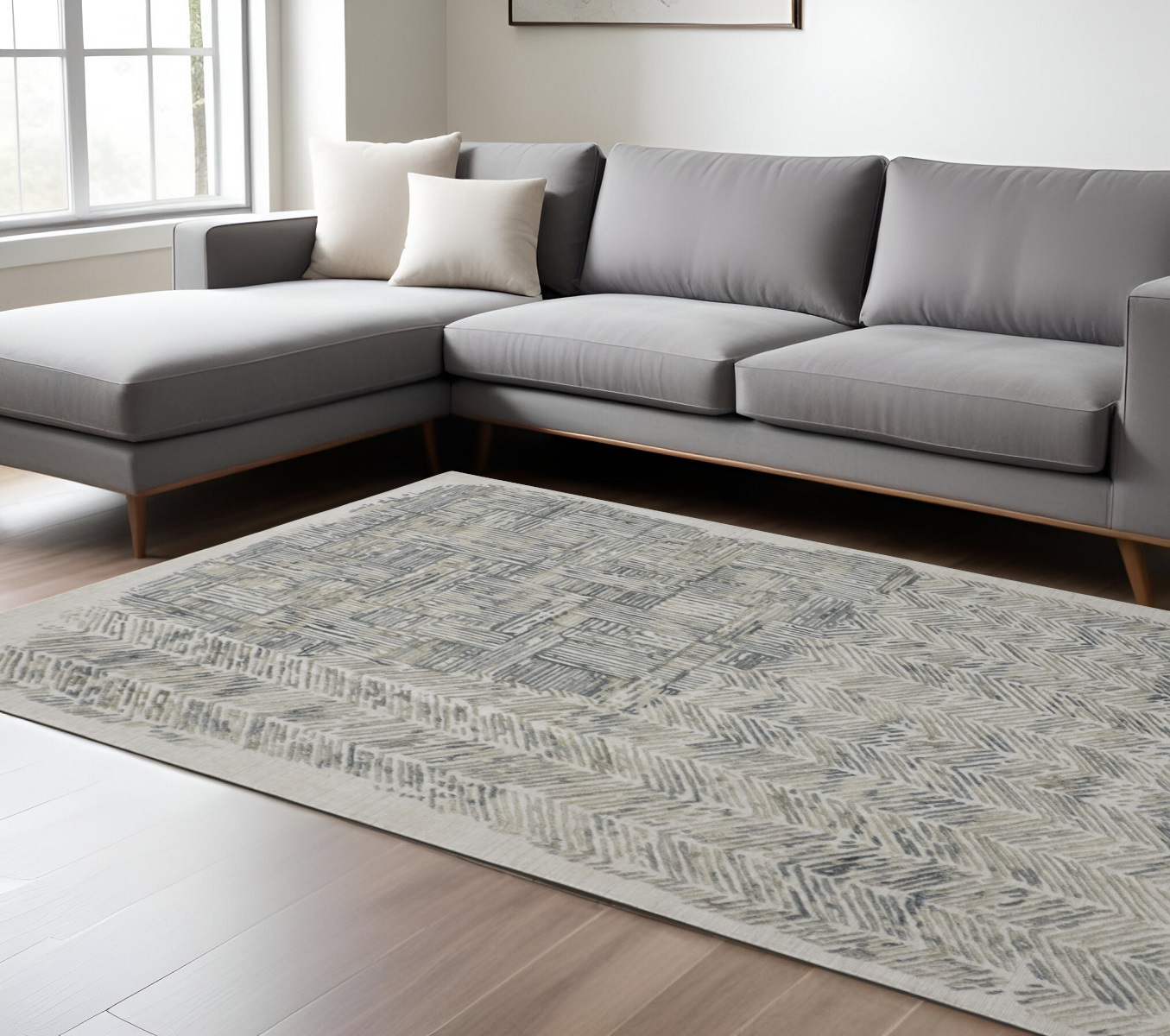 Add great coloration and comfortable texture to your space with this 12' x 15' green blue and ivory abstract hand woven distressed area rug. This rectangle shaped rug features a abstract design in green blue and ivory to give it visual interest. A classic shape marries with good looking design for your space Crafted by skilled artisans, this hand woven rug is genuine and unique. No two will be exactly alike. Place this area rug against a hardwood or tile floor and it will enliven your living space with style and sophistication. 0.4" H x 144" W x 180" D