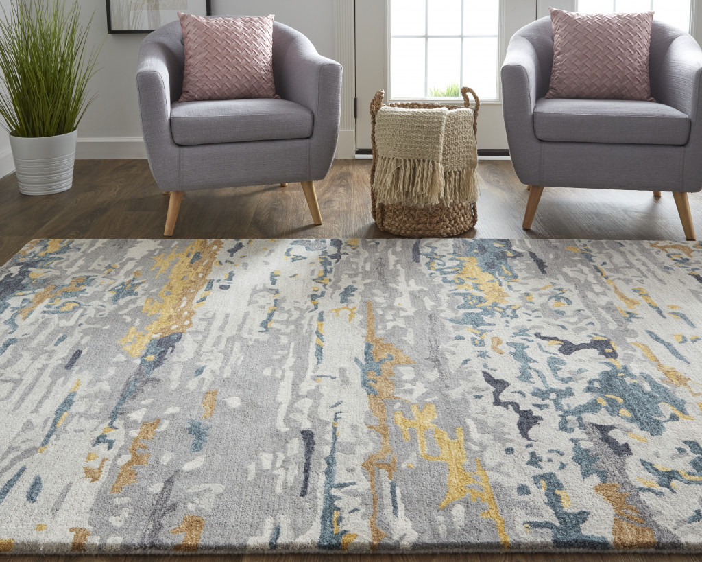 Set an inviting tone in your space with this 8-foot x 10-foot blue and gray wool abstract hand tufted area rug. This rectangle shaped rug features a abstract design in blue and gray to give it visual interest. A classic shape marries with good looking design for your space ideal for spaces with kids and pets, this rug is stain resistant to help repel stains and spilled liquids. 96-inch H x 120-inch W x 0.47-inch D