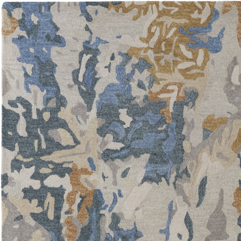 abstract hand tufted area rug, hand tufted area rug, tufted area rug, wool abstract hand tufted area, 12' X 15' gray blue gold wool |