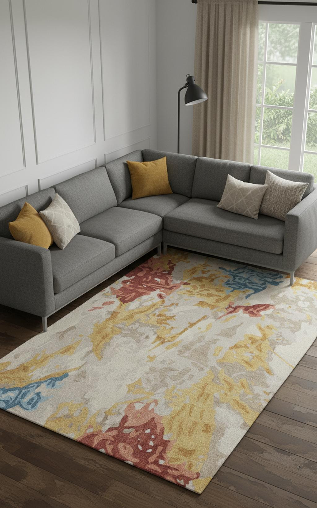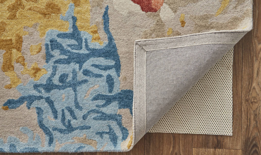 Set an inviting tone in your space with this 8' x 10' ivory yellow and blue wool abstract tufted handmade stain resistant area rug. This rectangle shaped rug features a abstract design in ivory yellow and blue to give it visual interest. A classic shape marries with good looking design for your space Ideal for spaces with kids and pets, this rug is stain resistant to help repel stains and spilled liquids. Area Rugs help to give warmth and sense of home to your space. 0.47" H x 96" W x 120" D
