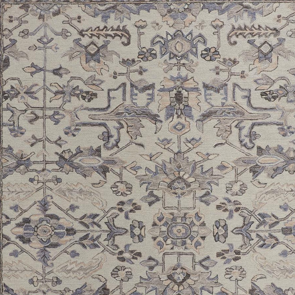 Add some artistry to your room with this 10' x 14' ivory and gray wool floral tufted handmade stain resistant area rug. This rectangle shaped rug features a floral design in ivory and gray to give it visual interest. A classic shape marries with good looking design for your space Ideal for spaces with kids and pets, this rug is stain resistant to help repel stains and spilled liquids. Place this area rug against a hardwood or tile floor and it will enliven your living space with style and sophistication. 0.37" H x 120" W x 168" D