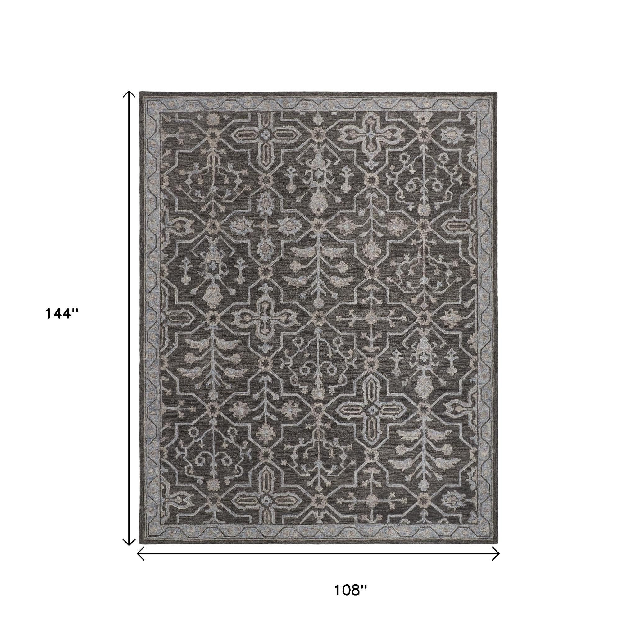 Add some artistry to your room with this 9-foot x 12-foot blue gray and charcoal wool floral hand tufted area rug. Ideal for spaces with kids and pets, this rug is stain resistant to help repel dirt and spilled liquids. Crafted by skilled artisans, this hand tufted rug is genuine and unique. No two will be exactly alike. Rugs are a great way to showcase your style, hide imperfections, warm your home and reduce noise. 108.00-inch h x 144.00-inch w x 0.37-inch d.
